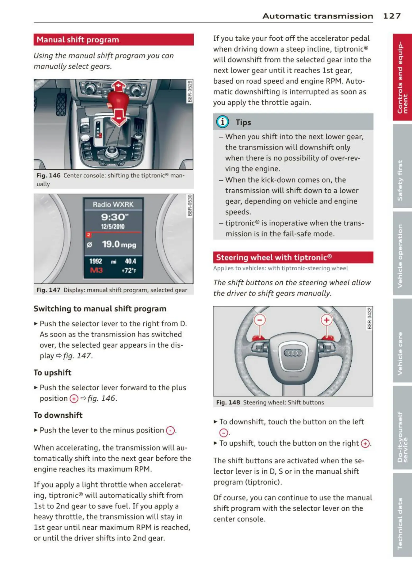 Fig. 146 Center console : shift ing the tiptronic ® man -