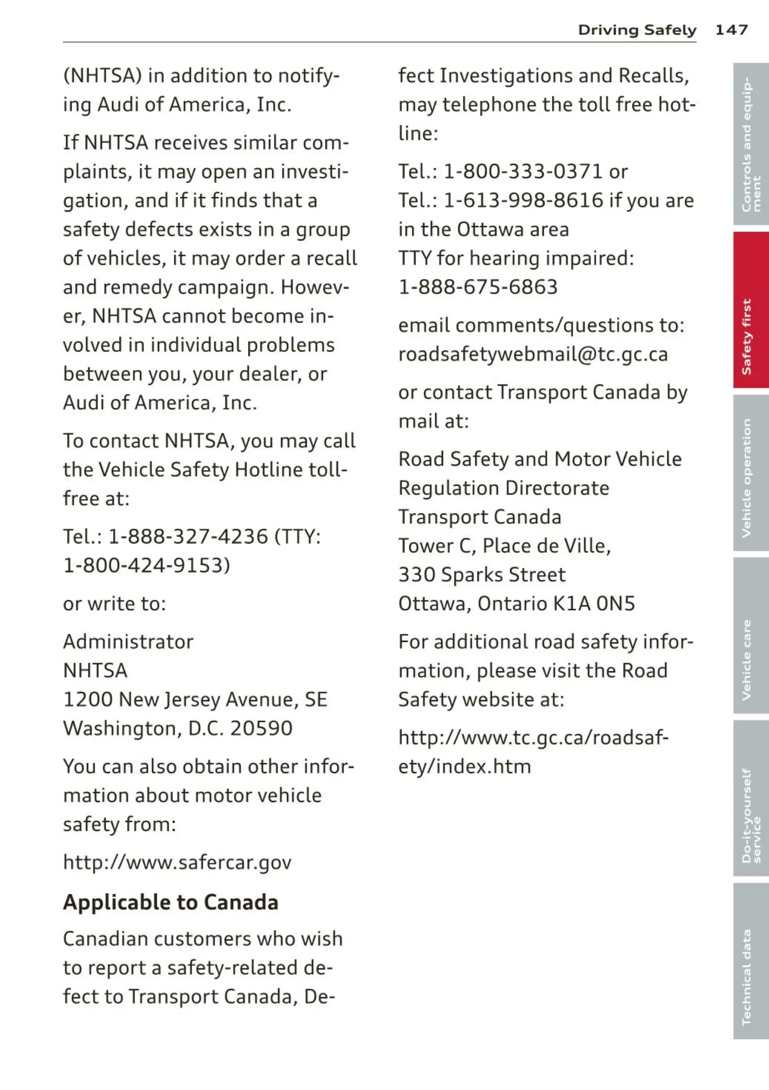 or contact Transport Canada by