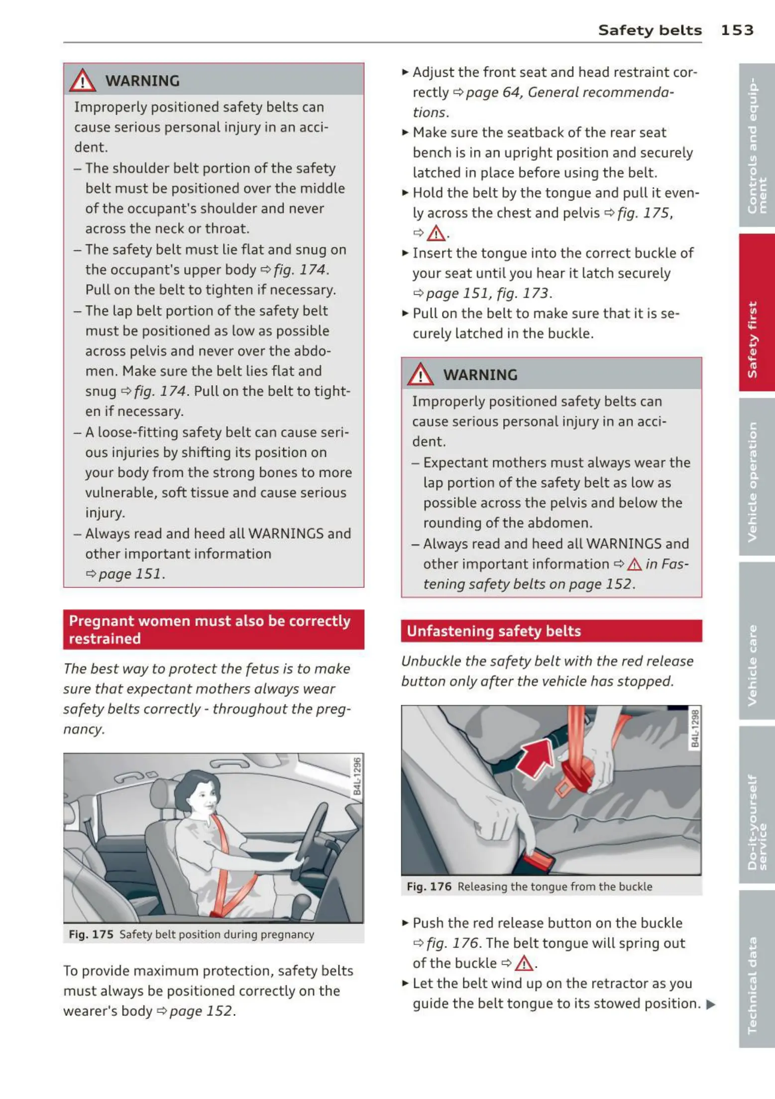 Fig. 175 Safety belt positio n during pregnancy