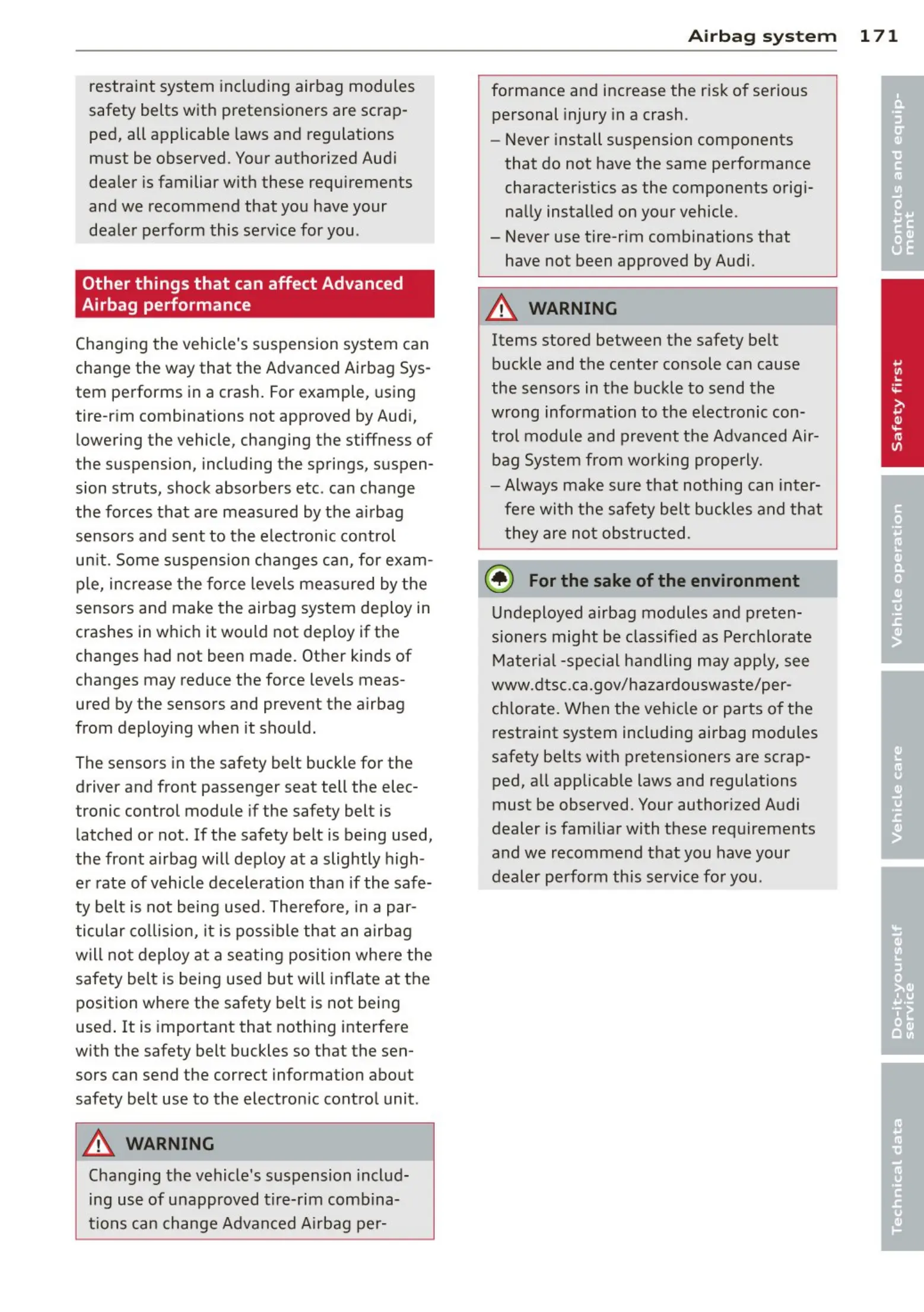 tions can change Advanced Airbag per-