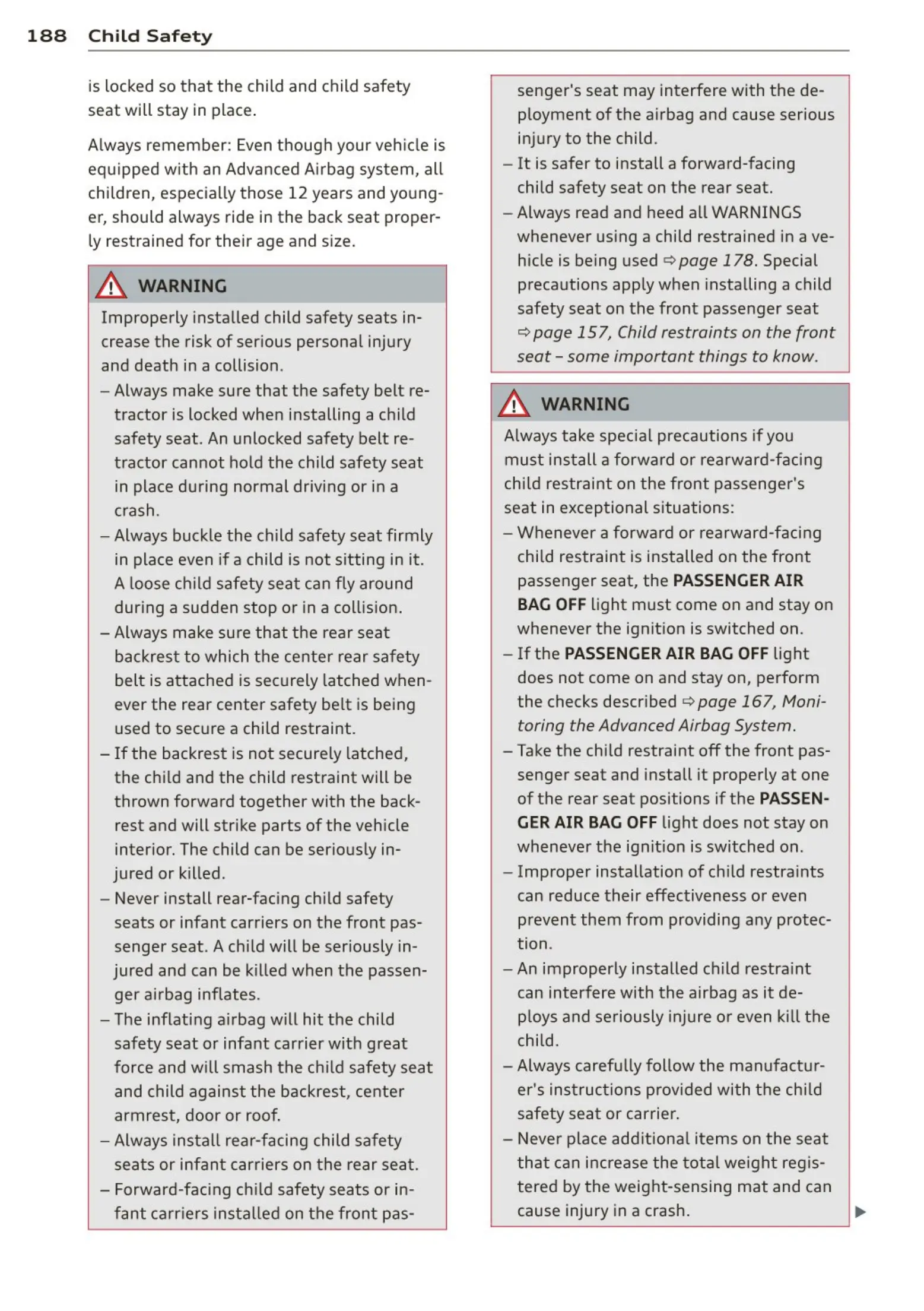 <=> page 157, Child restraints on the front