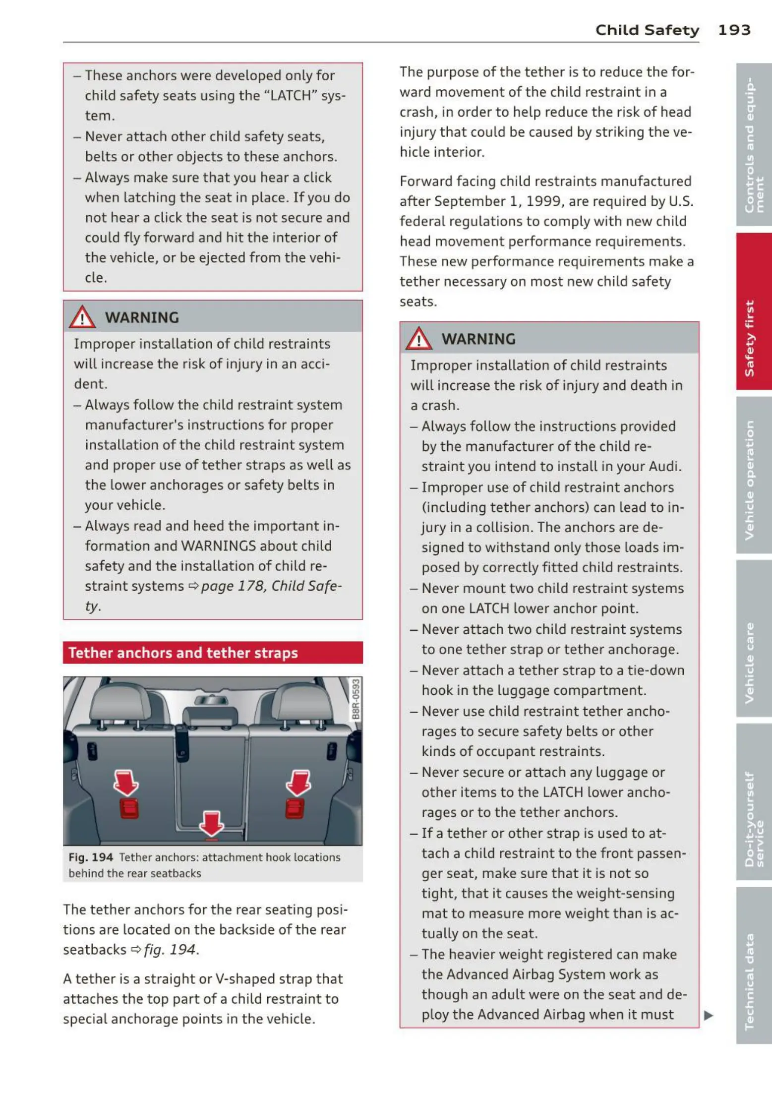 Fig. 194 Tether anchors: atta chment hook locatio ns