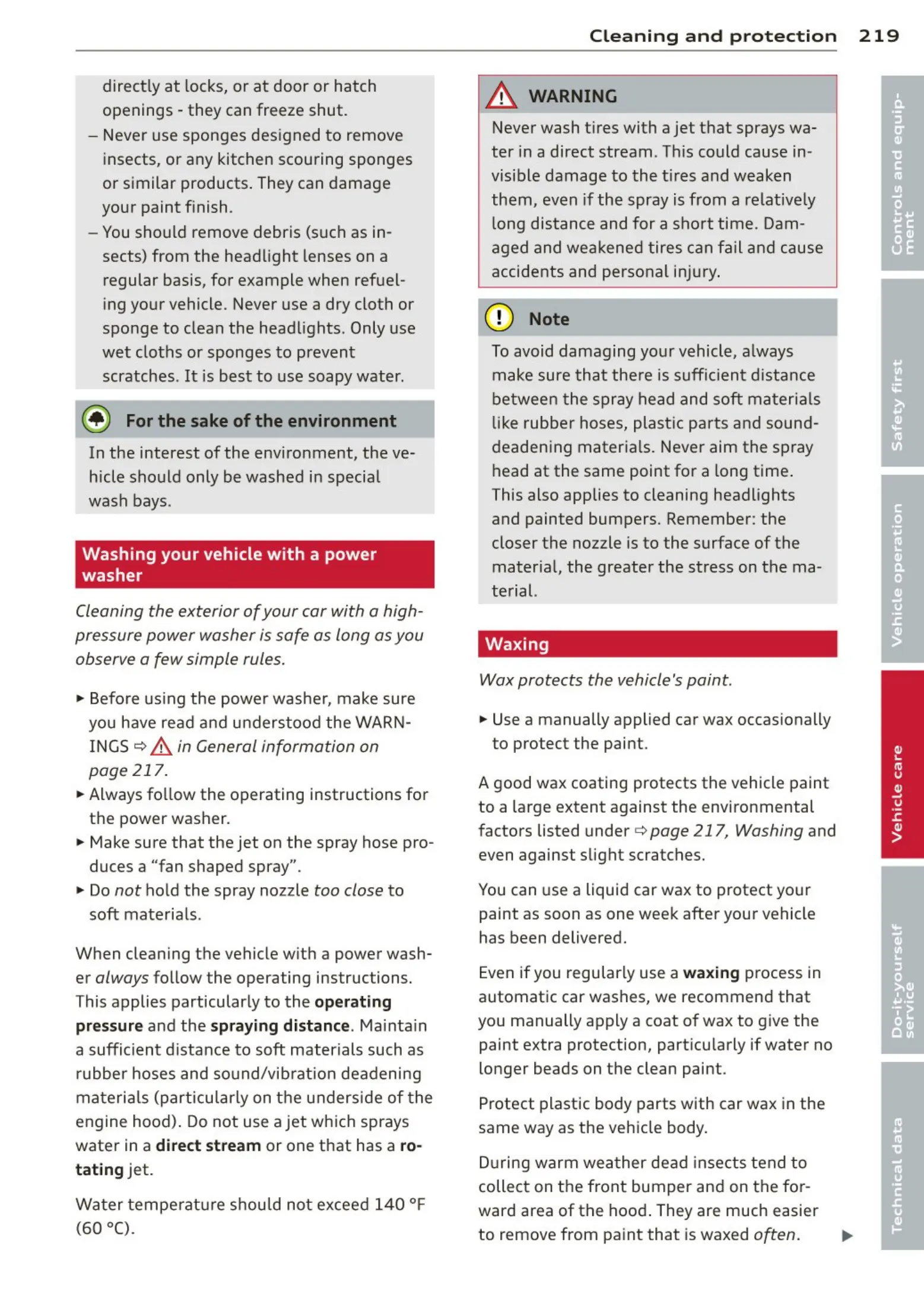When cleaning the vehicle with a power wash-