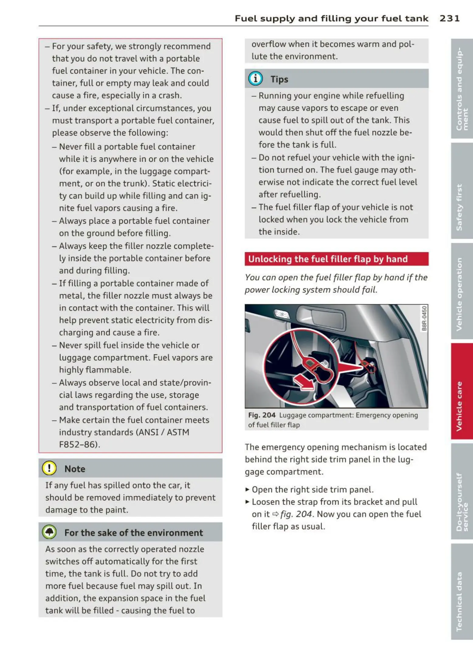 Fig. 204 Luggage compar t m en t : Em ergen cy op ening