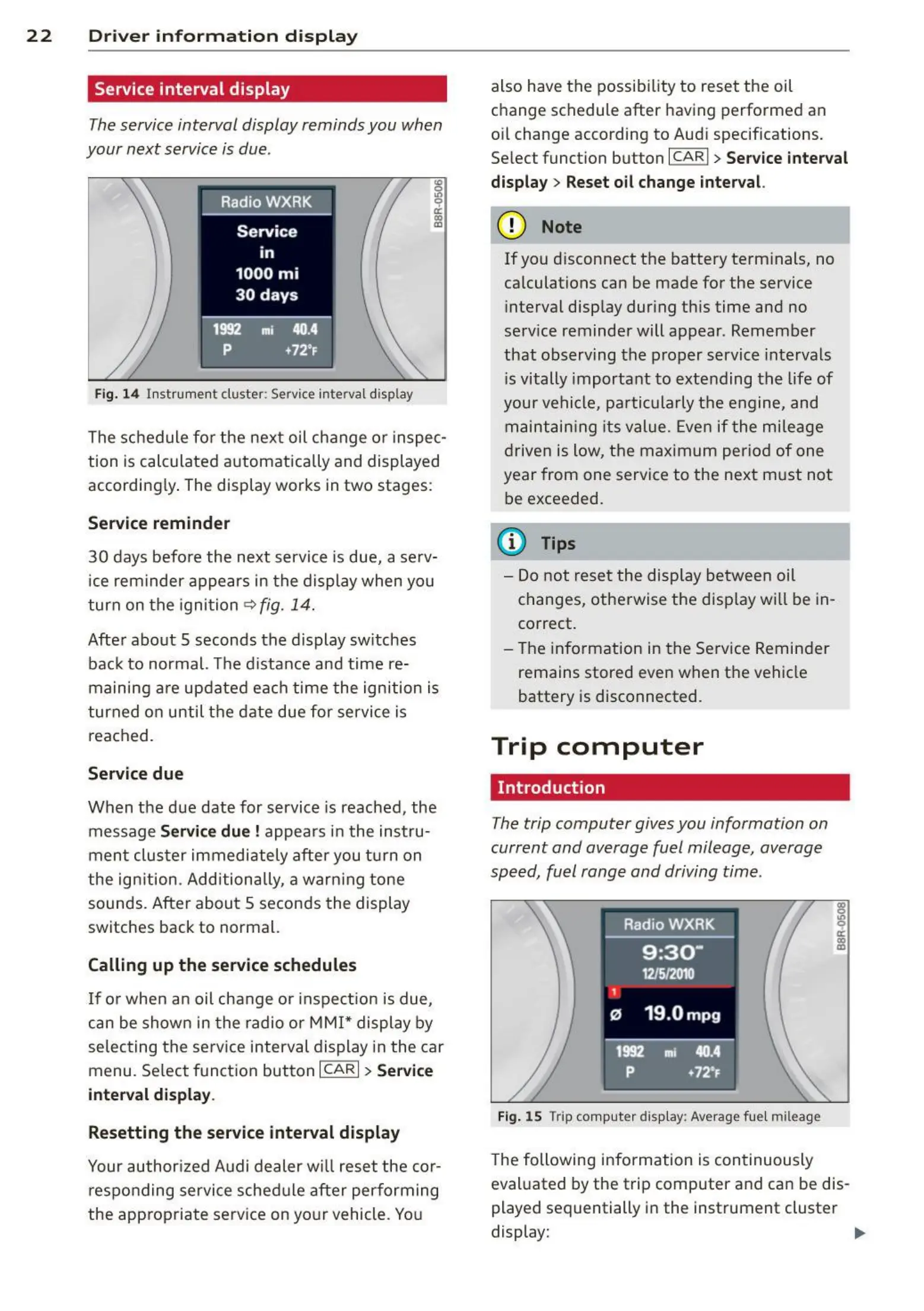 Fig. 15 Trip computer disp lay: Average fue l mileage