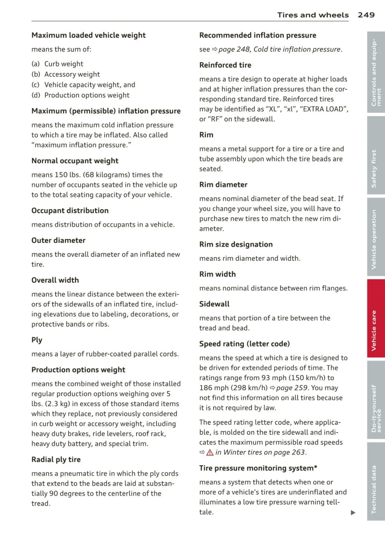 Tires and wheels 249