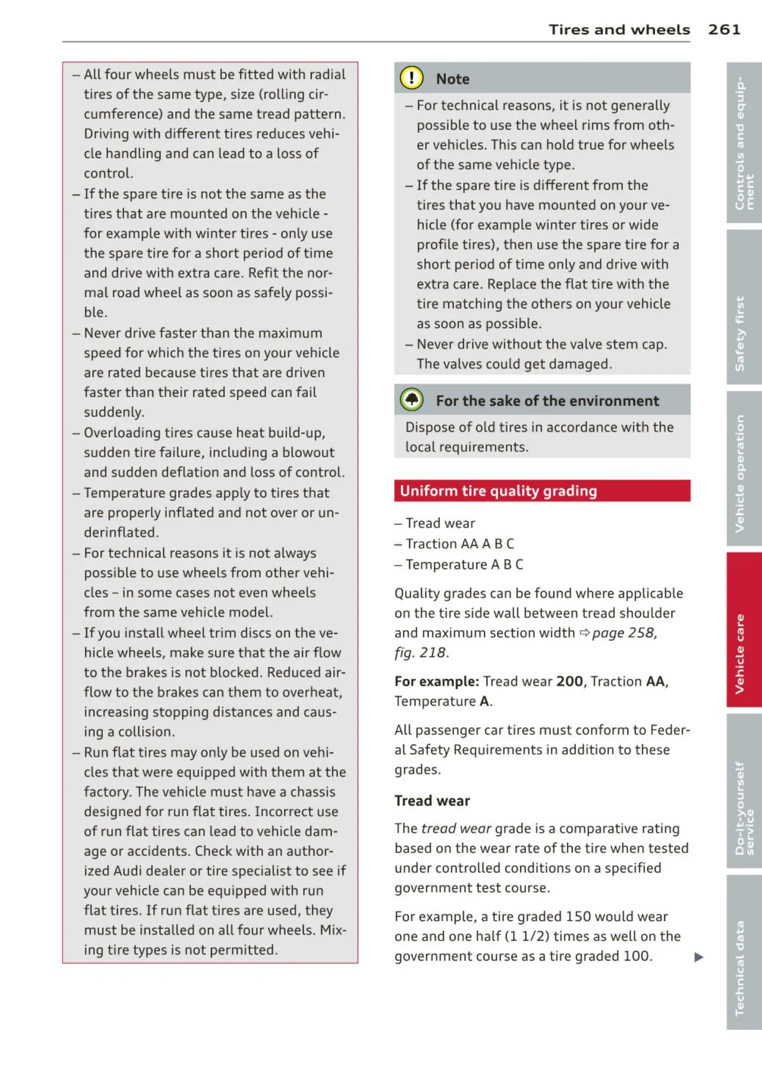 Tires and wheels 261
