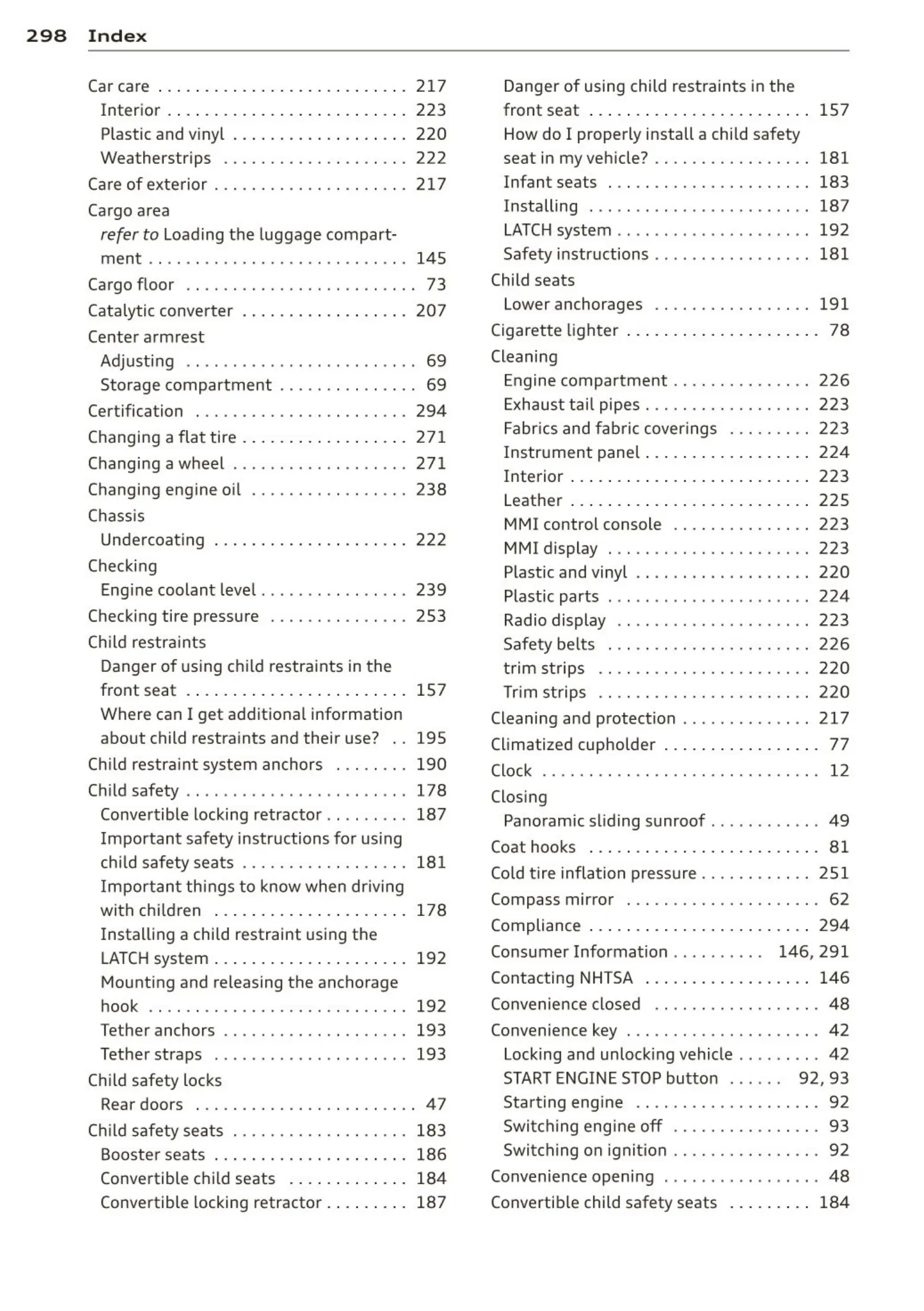 Car ca re . . . . . . . . . . . . . . . . . . . . . . . . . . . 21 7