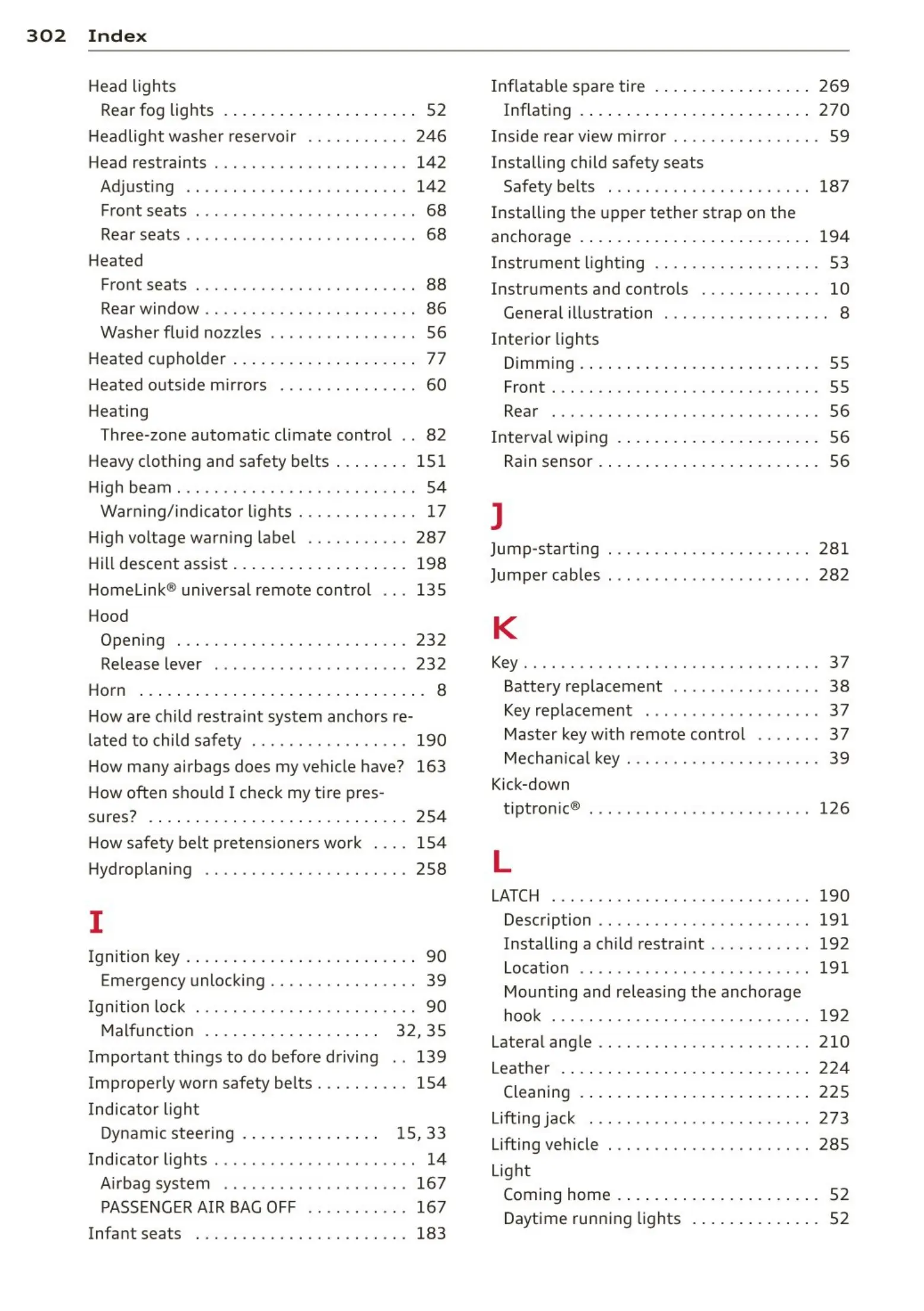 Jumper cables . . . ............ . ...... 282