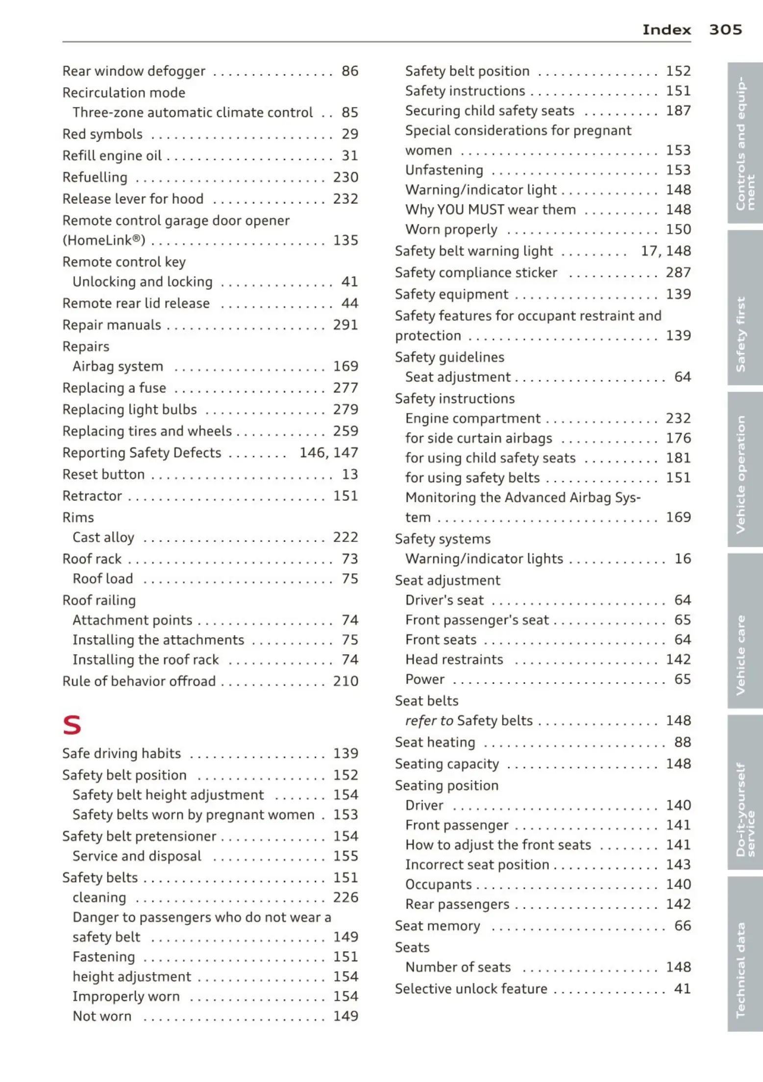Seat memory . . . . . . . . . . . . . . . . . . . . . . . 66