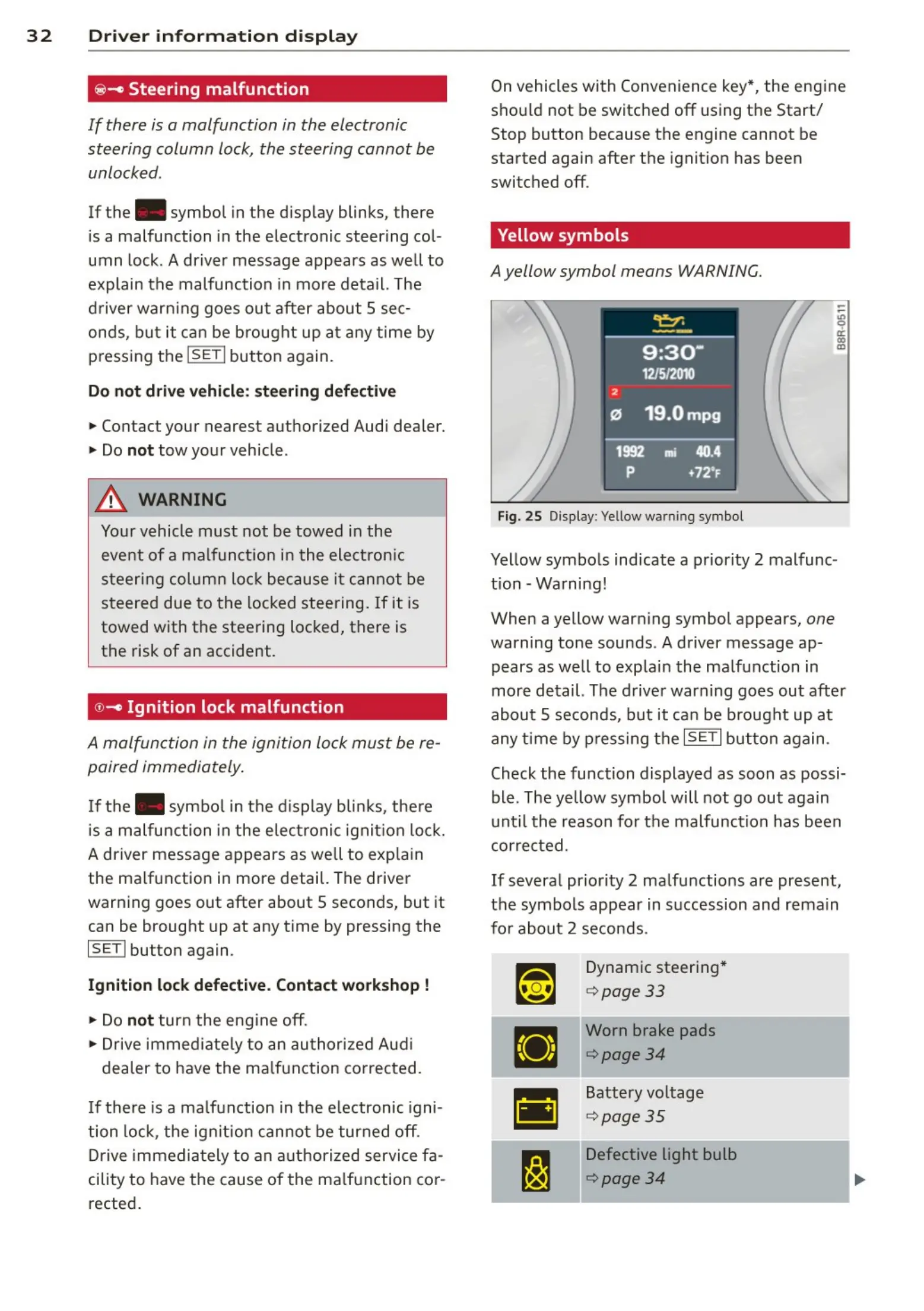 Fig. 25 Display: Yellow warning symbol