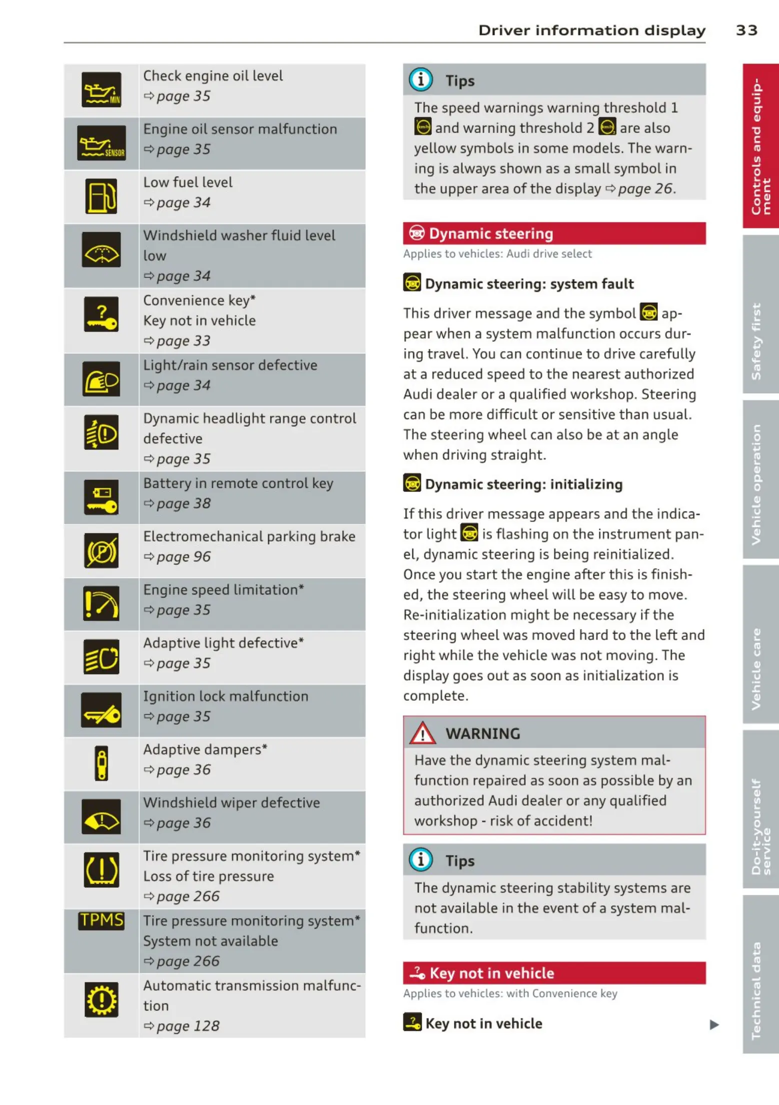 Audi dealer or a qualified workshop. Steering