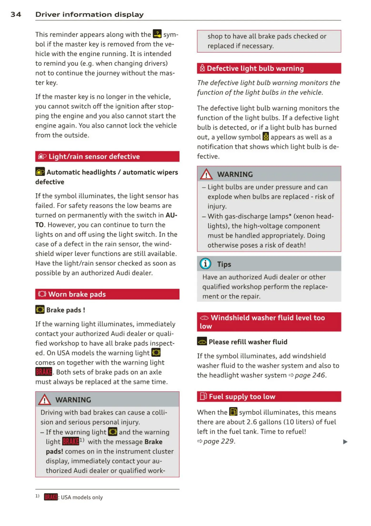ed. On USA models the warni ng light