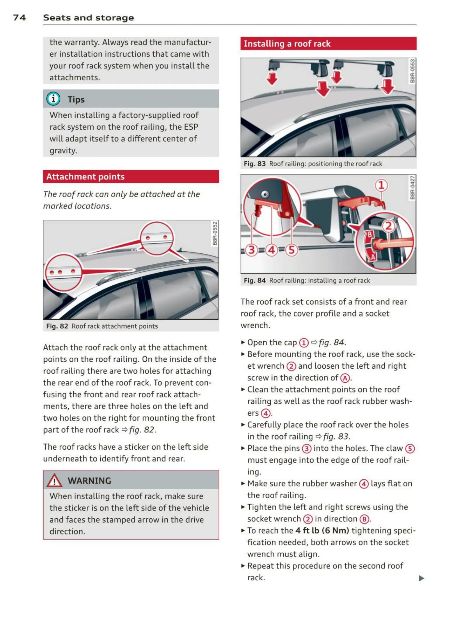 84 Roof railing: install ing a roof rack