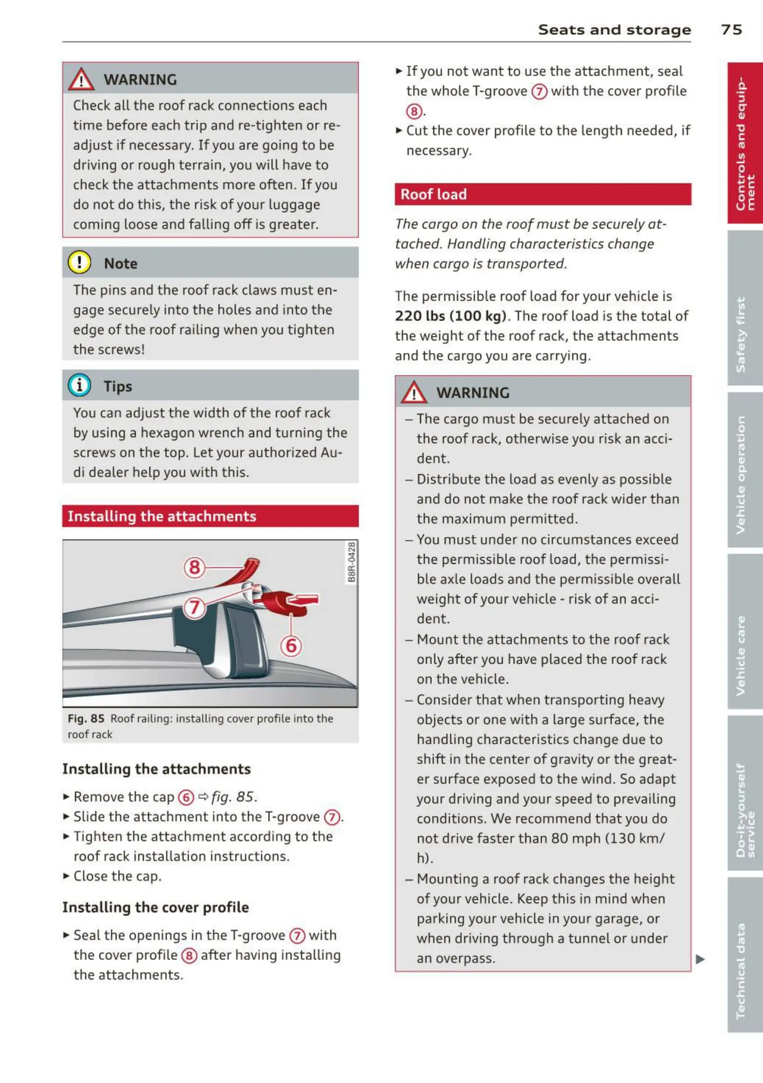 the roof rack, otherwise you risk an acci-