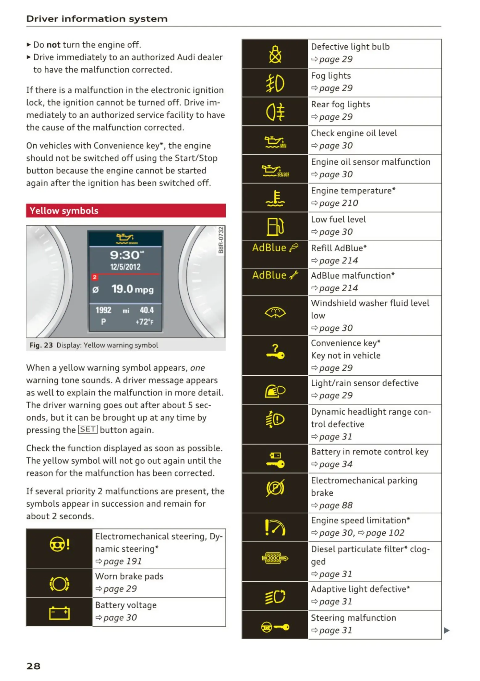 Fig. 2 3 Display: Yellow warning sym bol