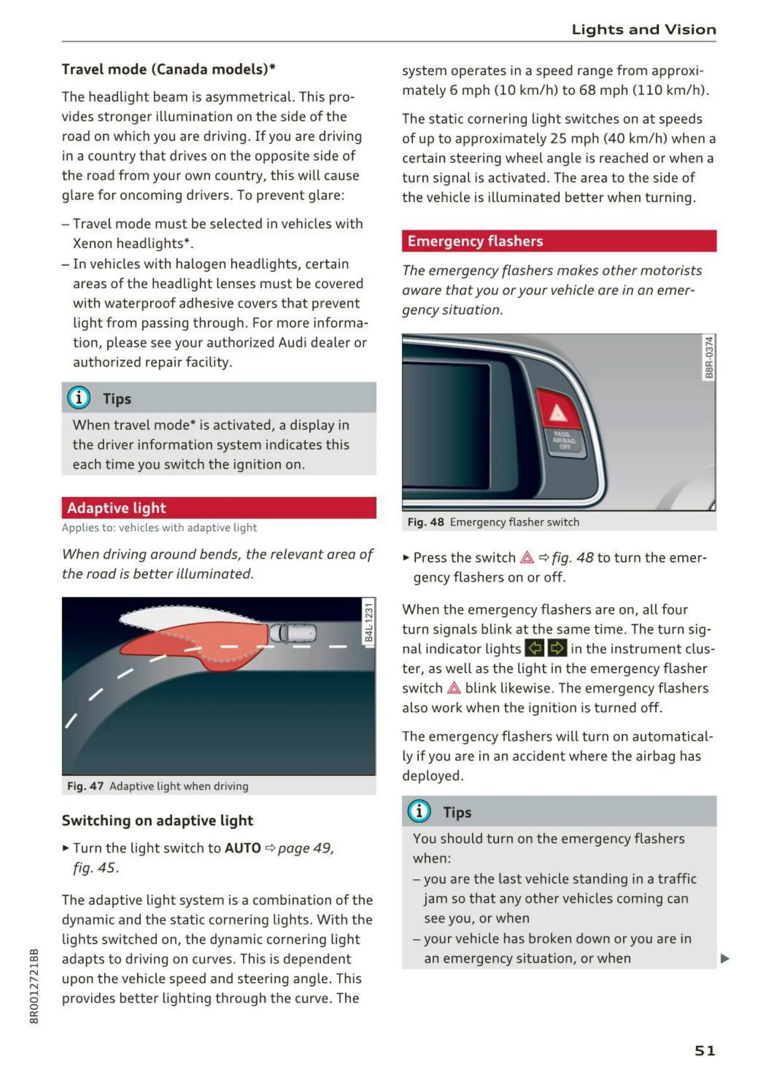 .. Press the switch &, c:> fig. 48 to turn the emer-