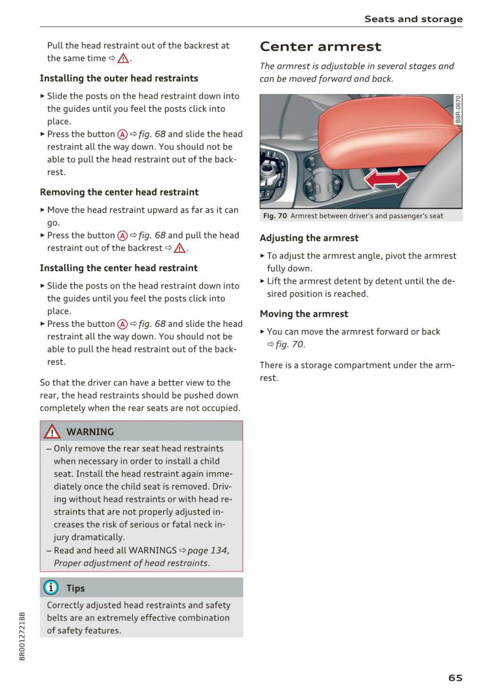 Fig. 70 Arm rest betwee n driver's and passenger 's seat