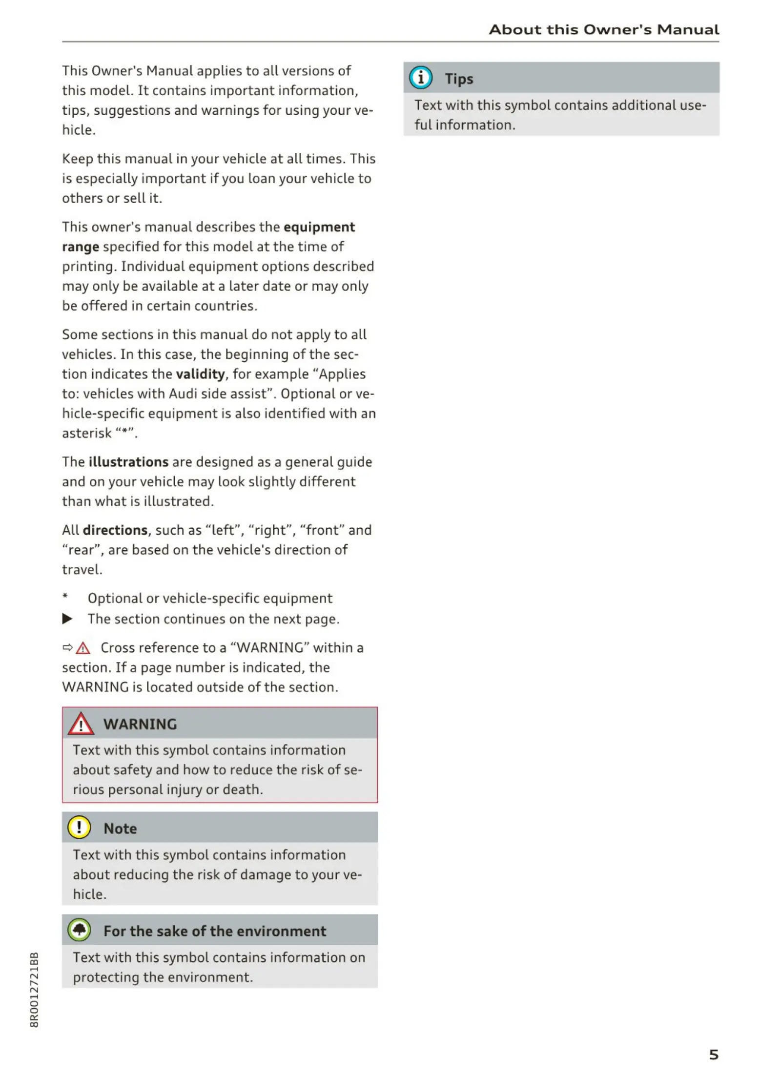 to: vehicles w ith Audi side assist". Optional or ve-