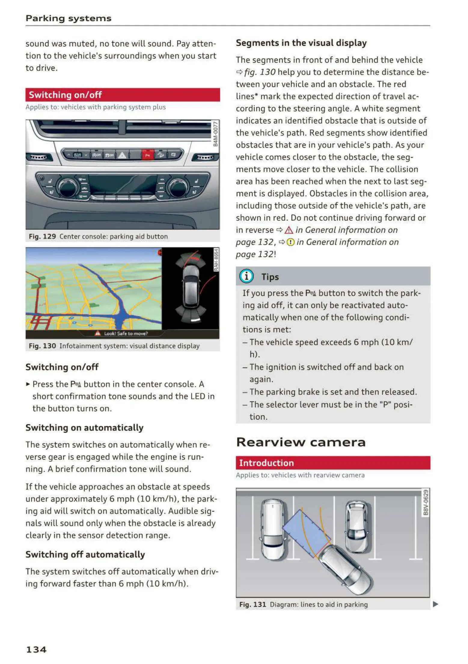 Fig. 129 Cen ter consol e : park ing aid butt on
