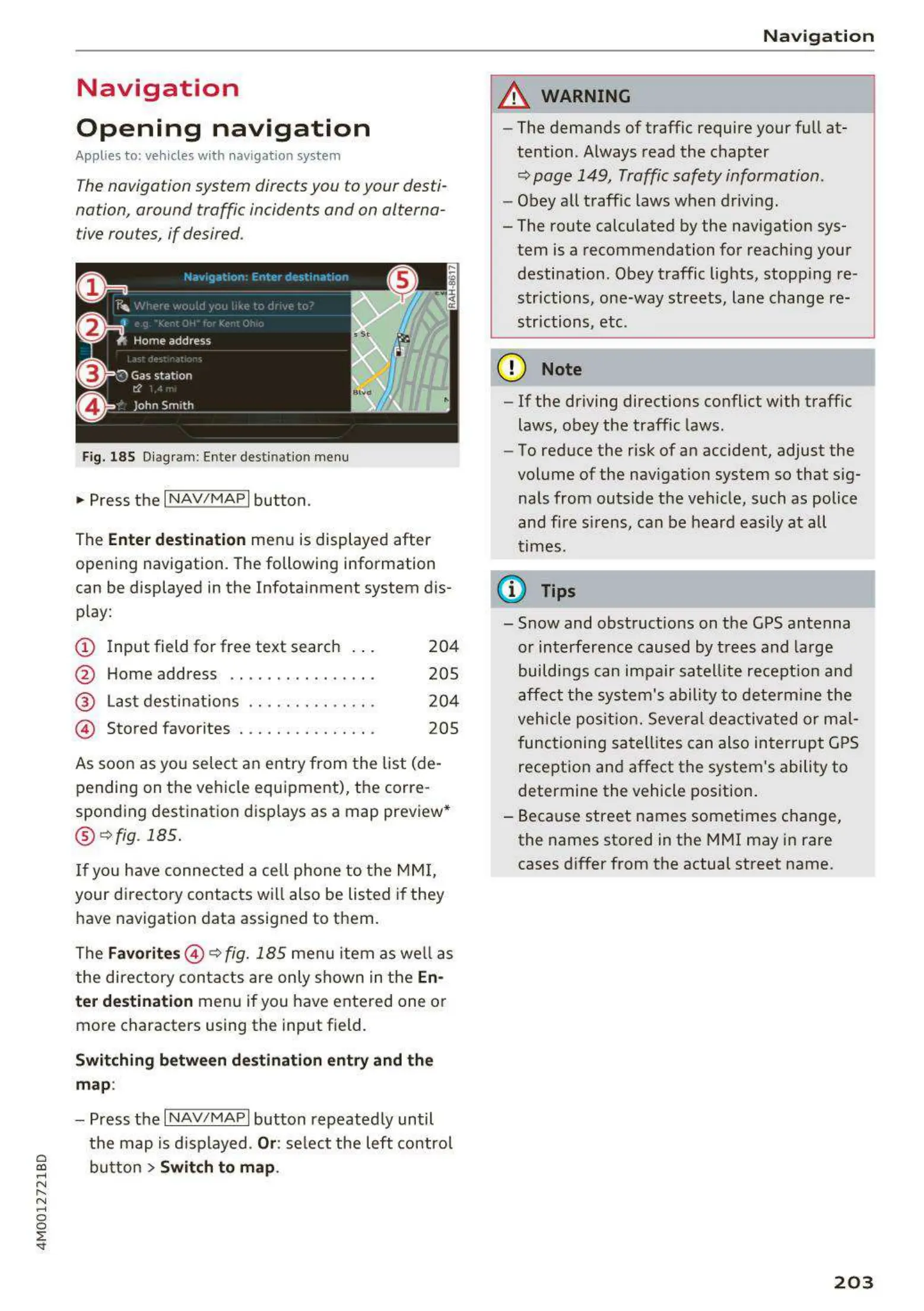 Applies to: veh icles with navigation system