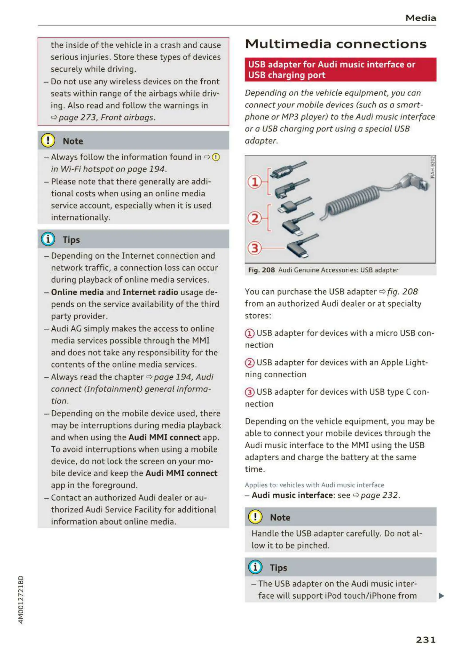 Fig. 208 Audi Genuin e Accessories: USB adapter