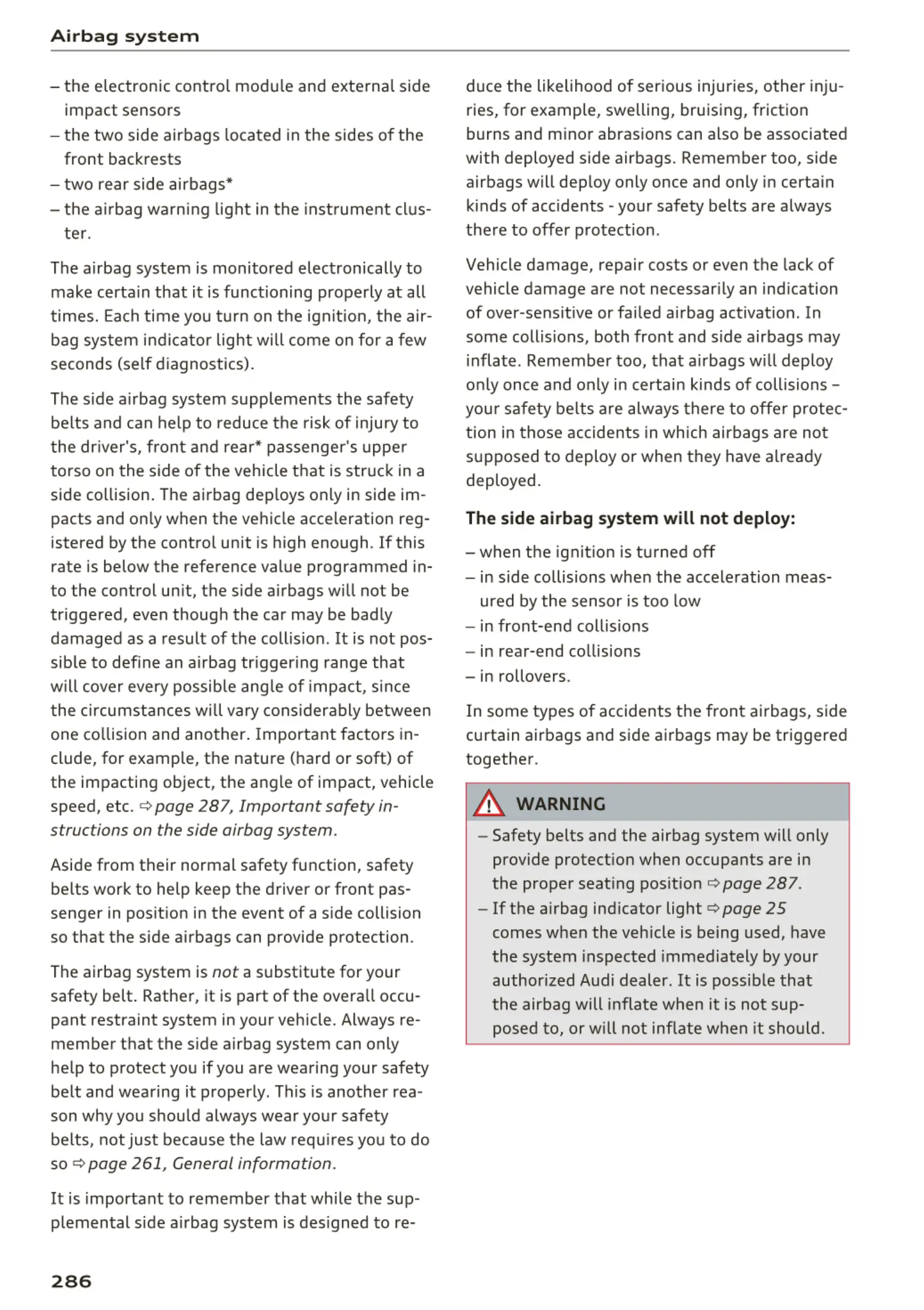- Safety belts and the airbag system will only