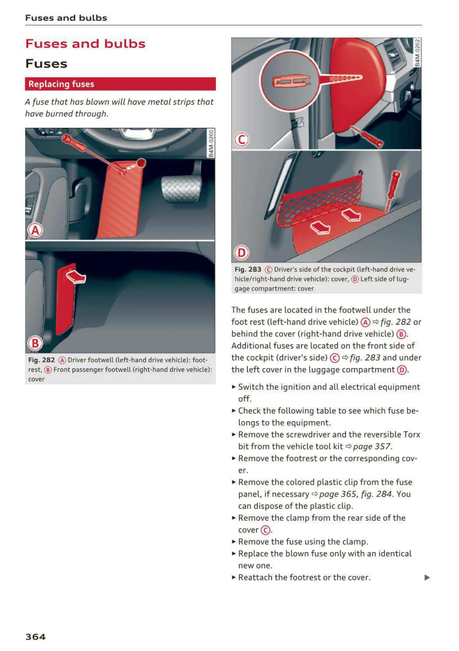 Fig. 282 @ Driver footwell (left-hand drive vehicle): foot -
