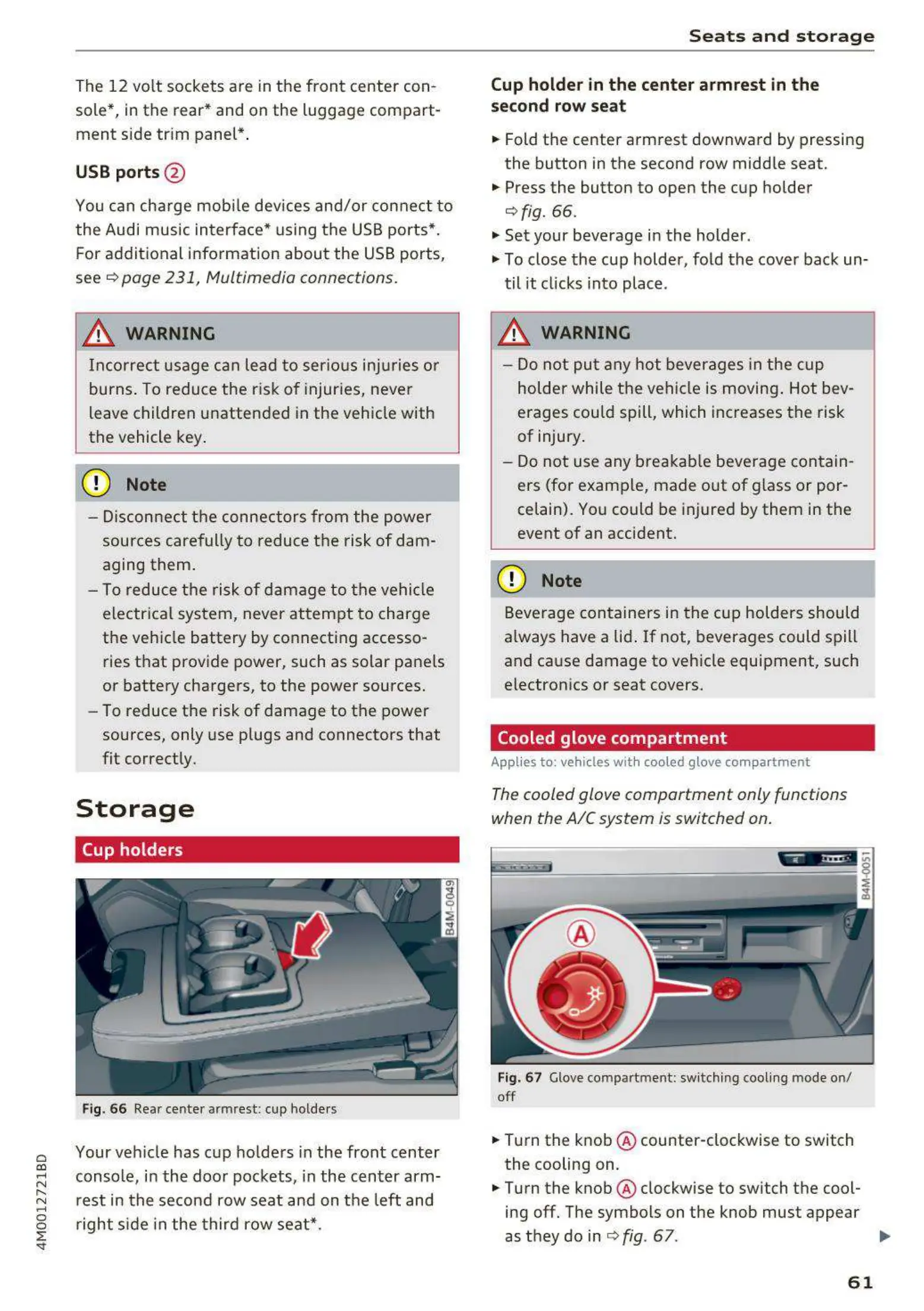 Fig. 67 Glove compartment: switch ing cool ing mode on/