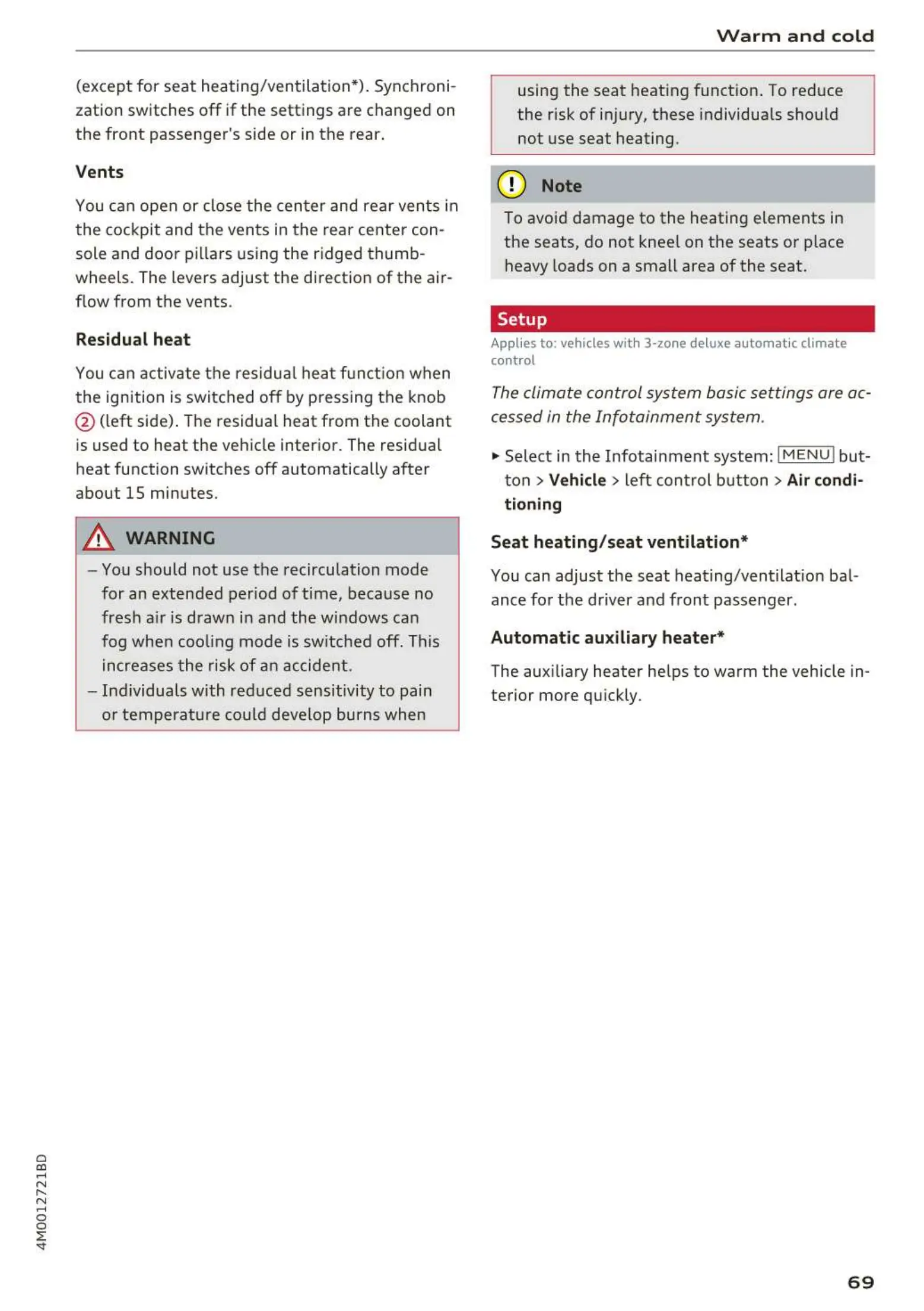 not use seat heating.