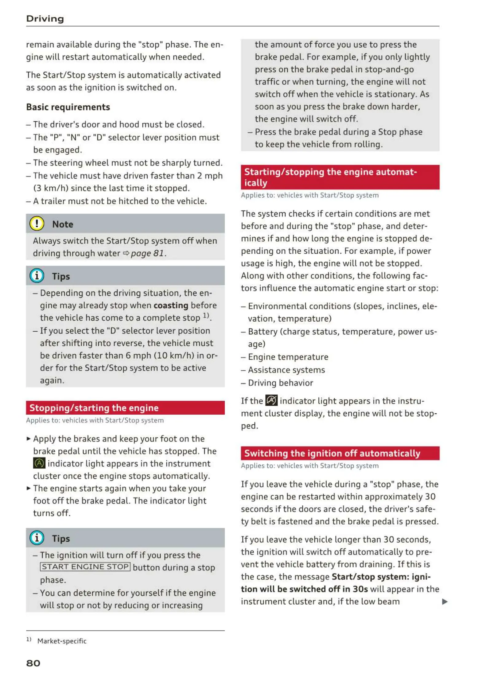 Applies to: vehicles with Start/ Stop syst em