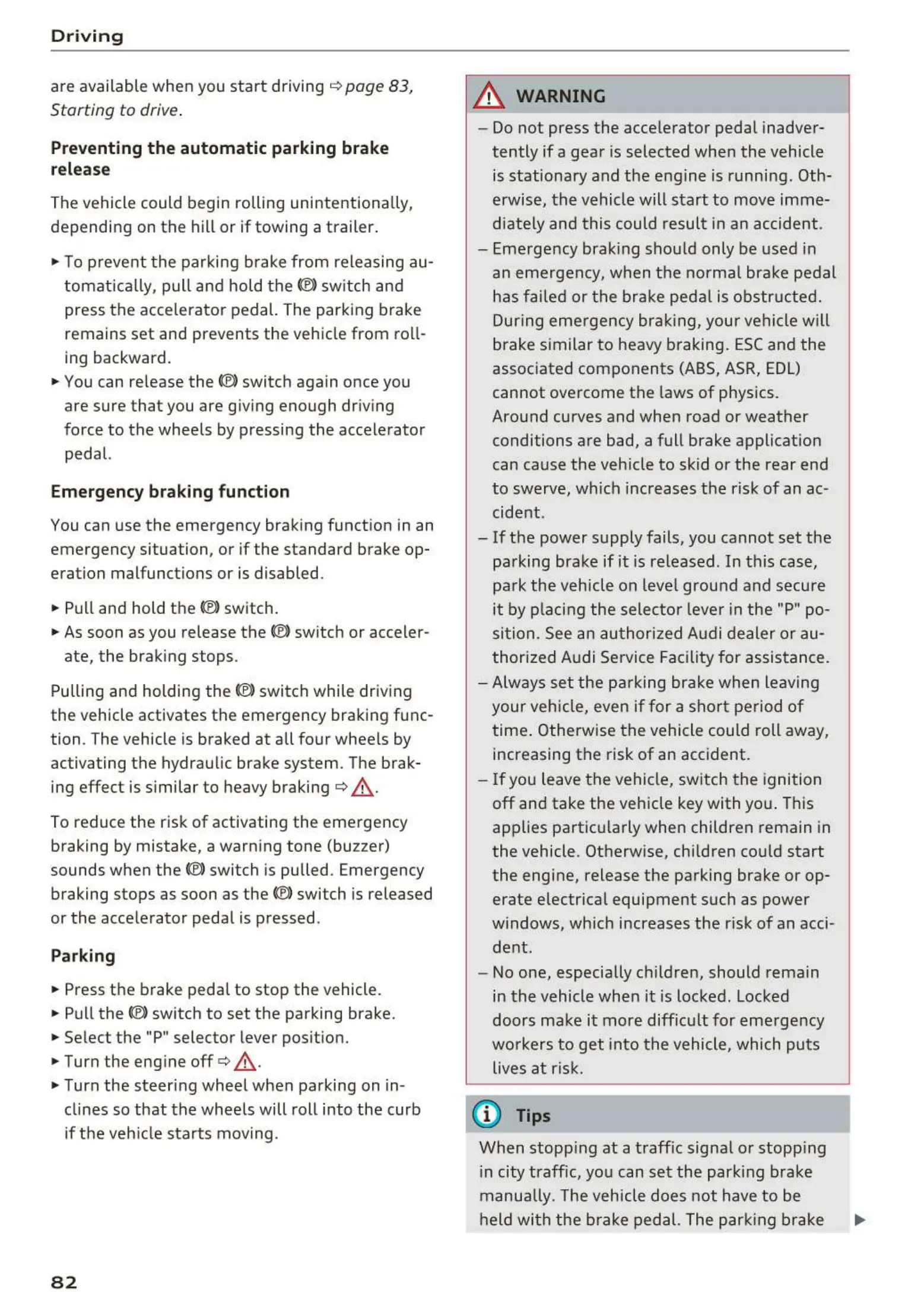 parking brake if it is released . In this case,