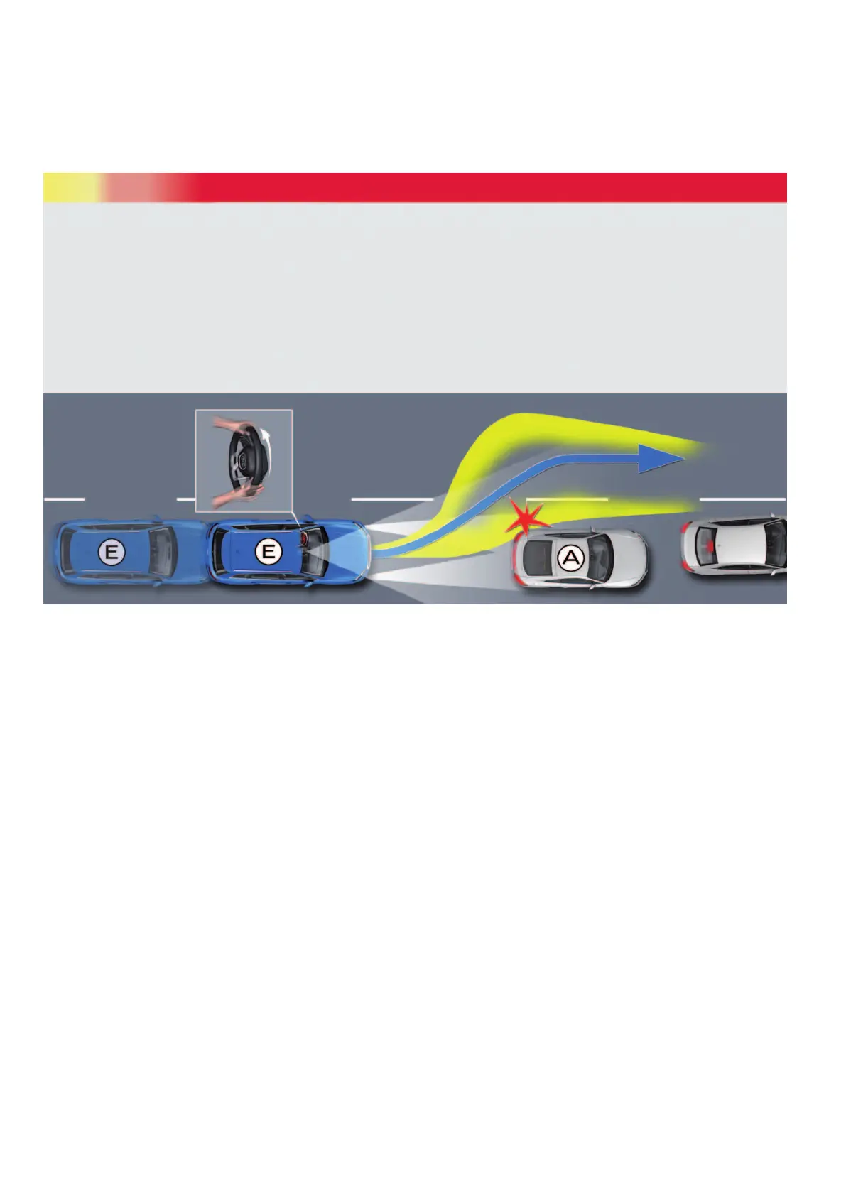 If the driver (E) takes action to evade vehicle (A) after the acute
