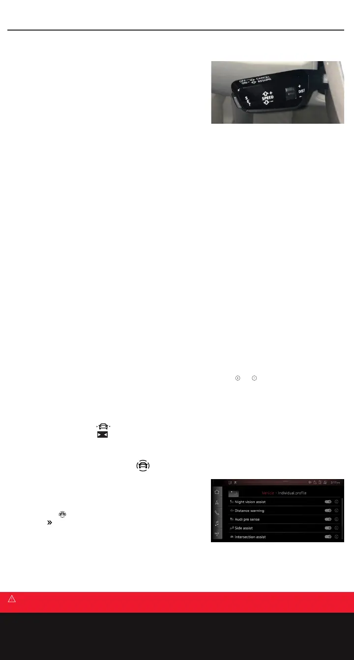• Push the stalk up or down two levels to increase/decrease speed in 5 mph increments.