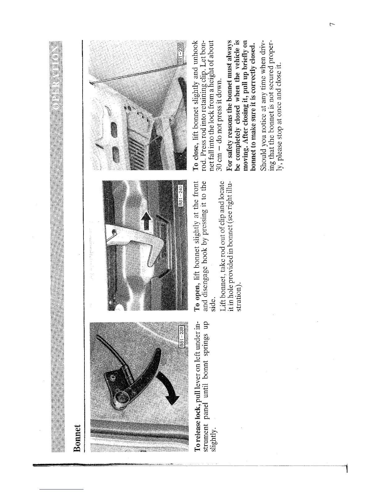 Audi QUATTRO - Bonnet; Opening and closing procedures