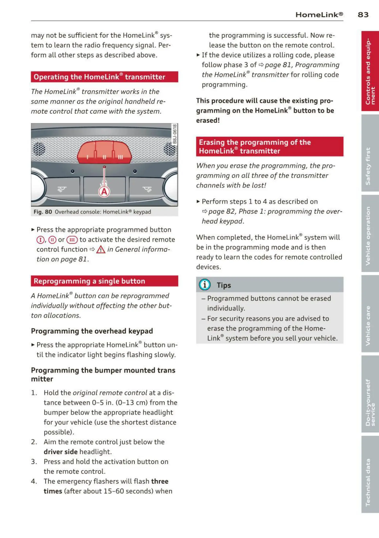 Fig. 80 Overhead conso le: Home lin k® keypad