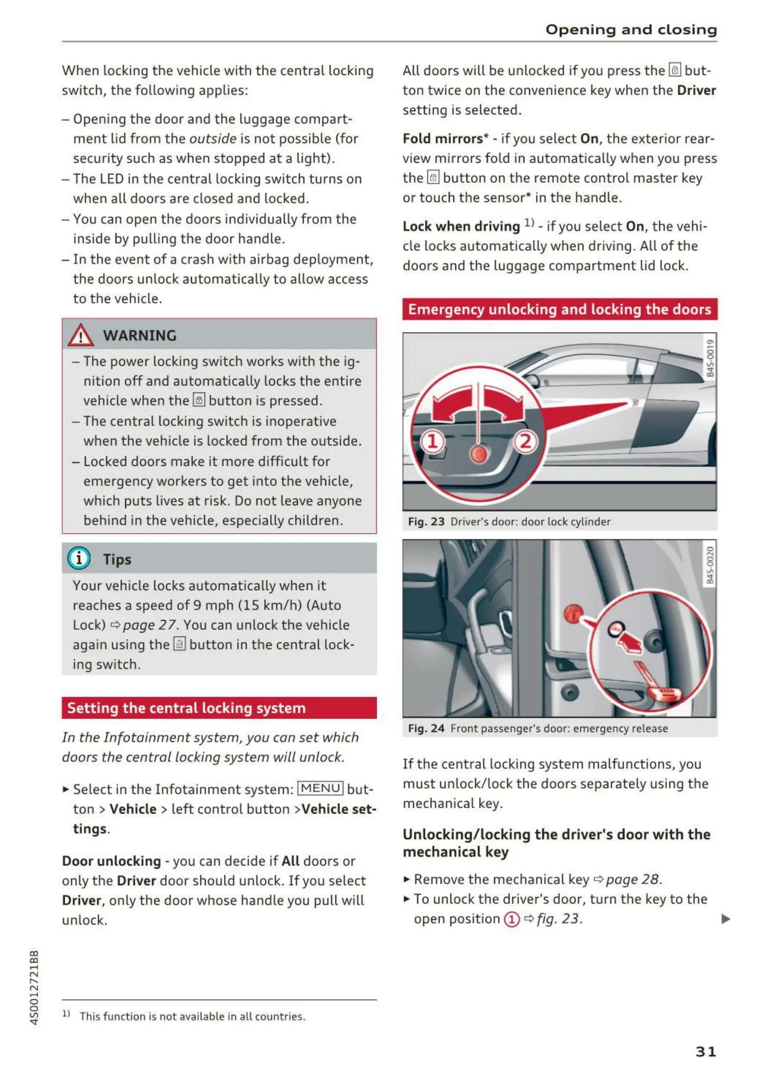 doors the central locking system will unlock.