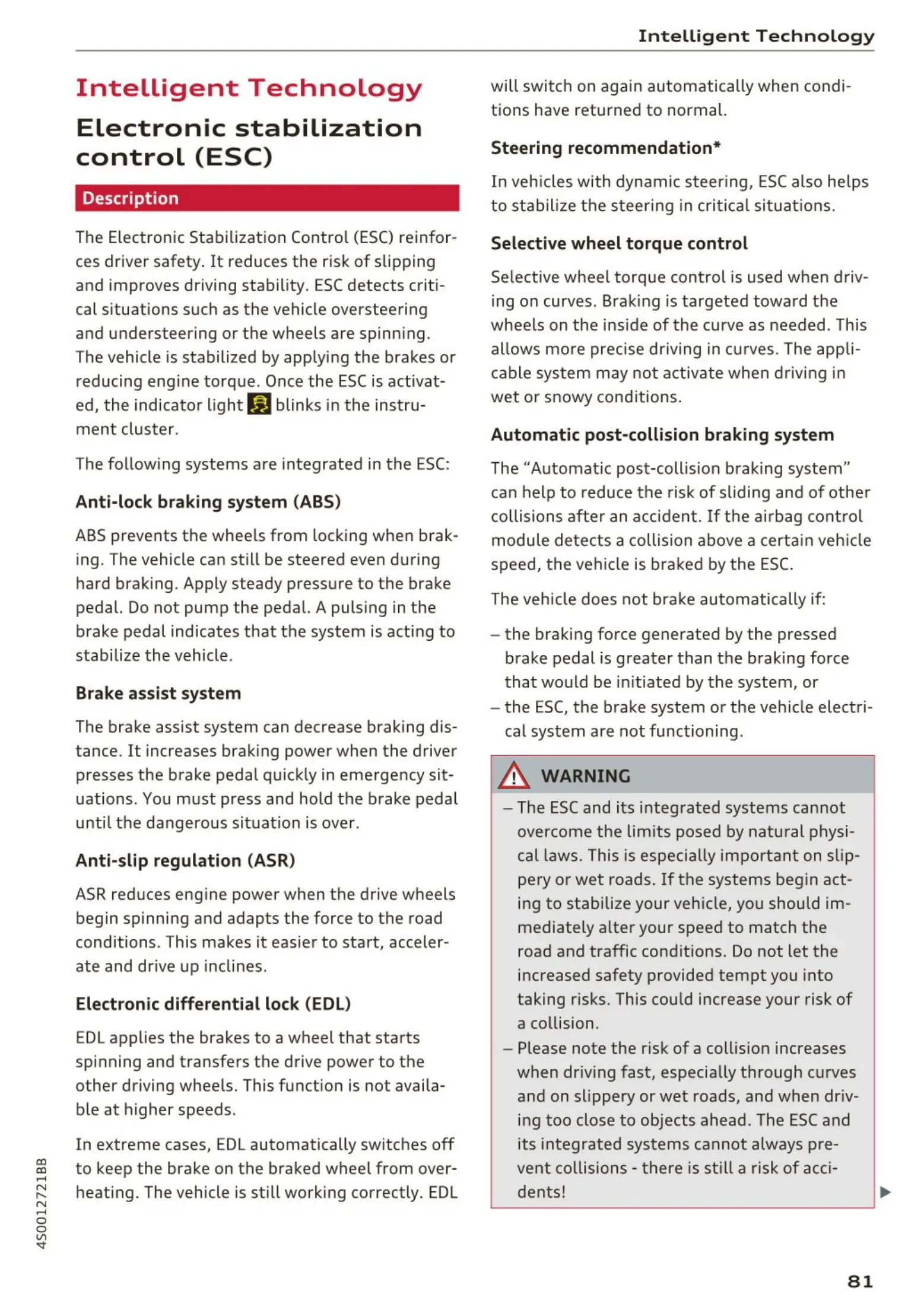 The Electr on ic St abilization Contro l (ESC) reinfor -