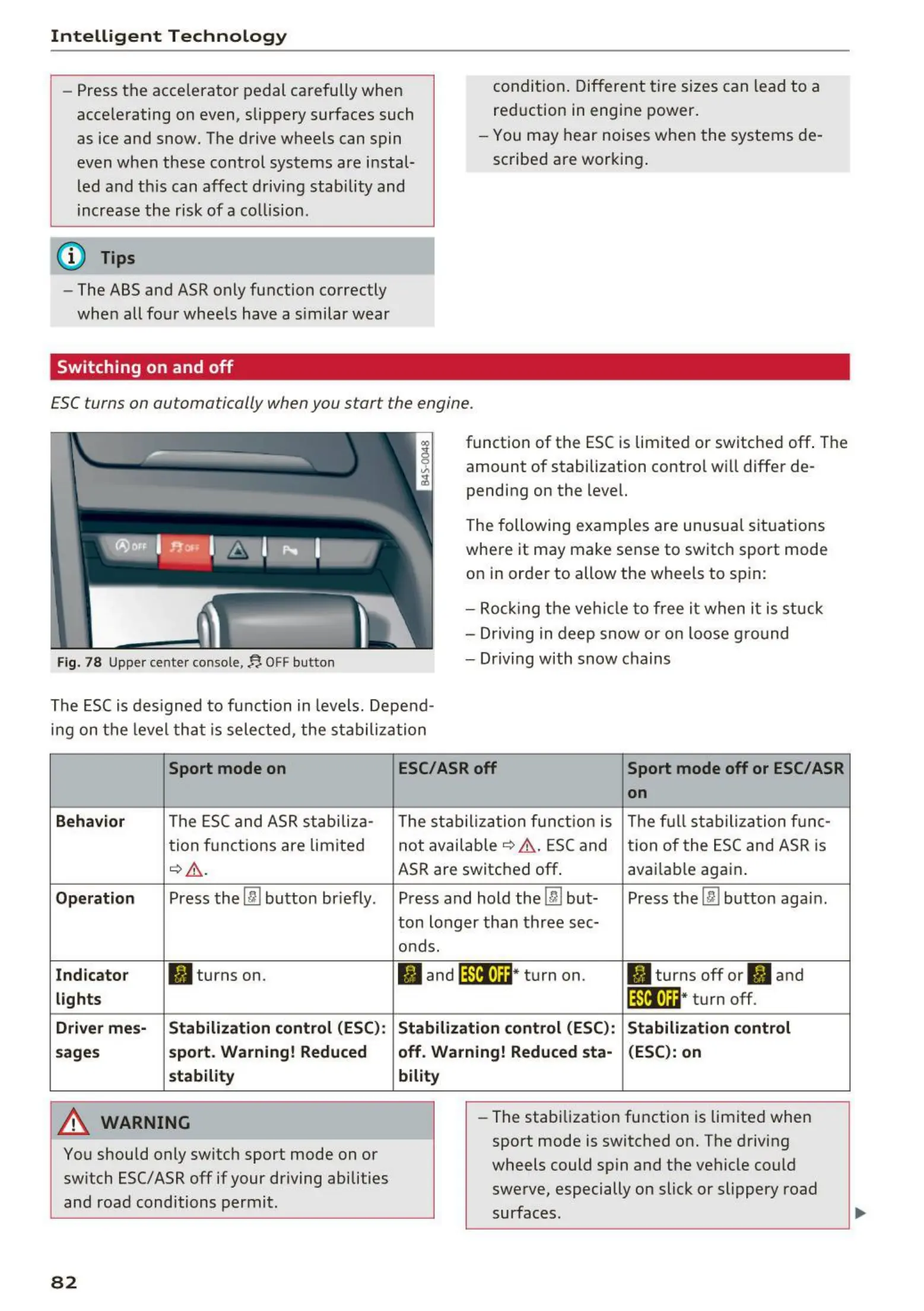 ESC/ASRoff Sport mode off or ESC/ASR