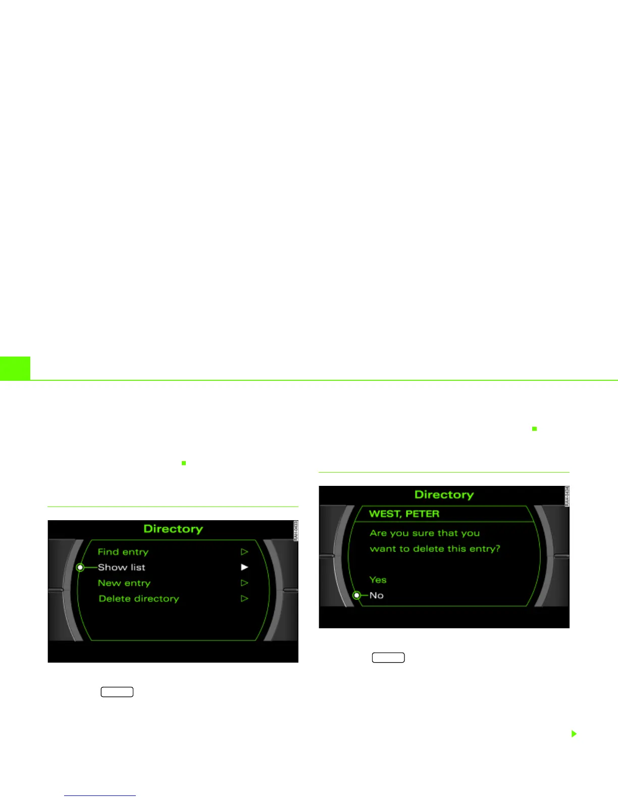 – Select Find entry or Show list Þ page 99, fig. 101.