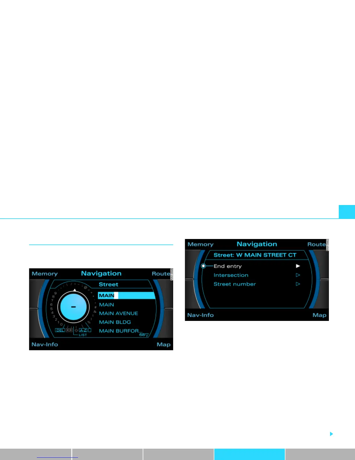 Fig. 126 Navigation: Entering a street as destination using the speller