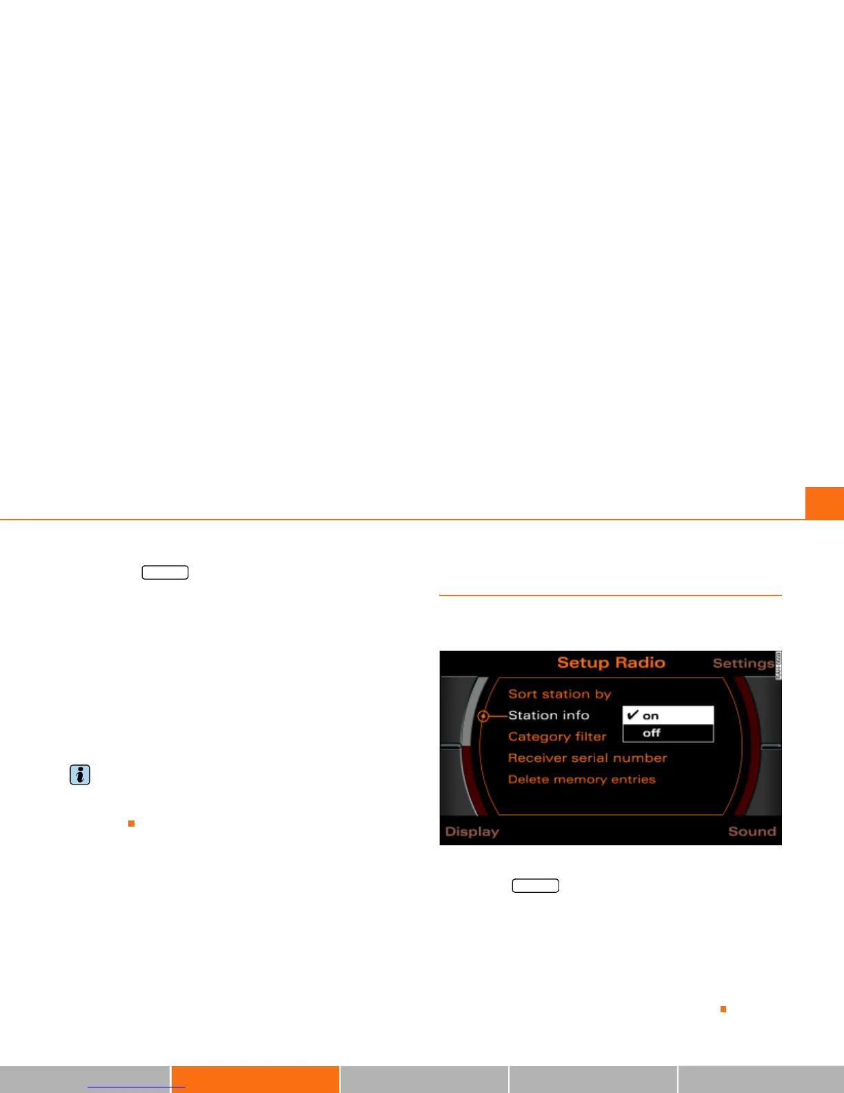 General operation RADIO, CD NAME, TEL NAV, INFO CAR, SETUP