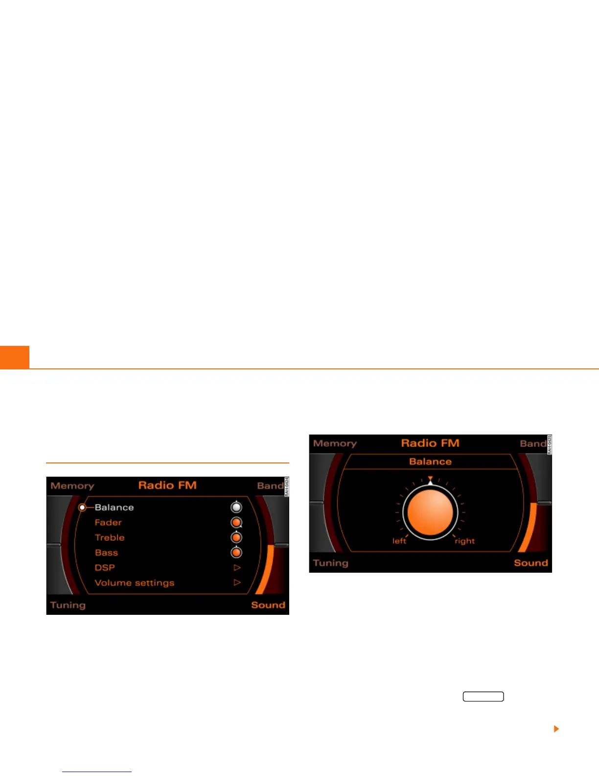 menu (e.g. Balance) Þ fig. 97 to set the sound character-
