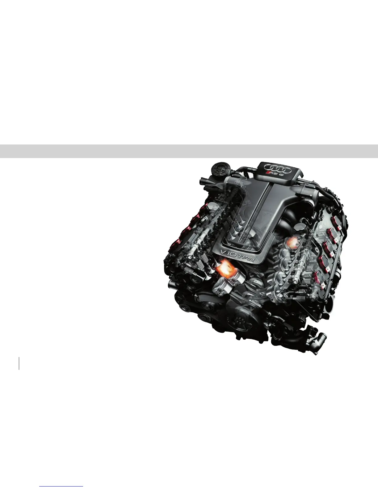 A twin-turbocharged 10-cylinder 580PS TFSI engine. The words