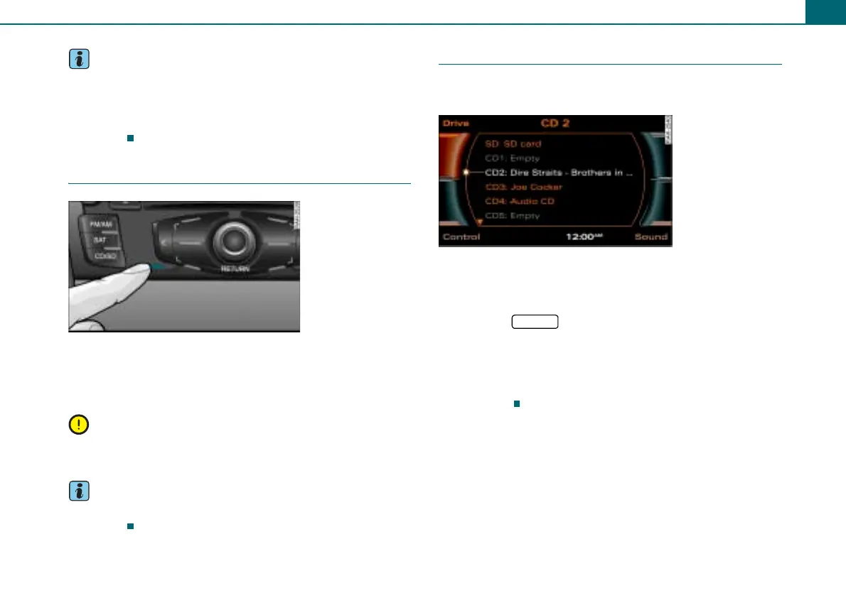 Requirement: A CD is in the CD changer ⇒ page 29 or a
