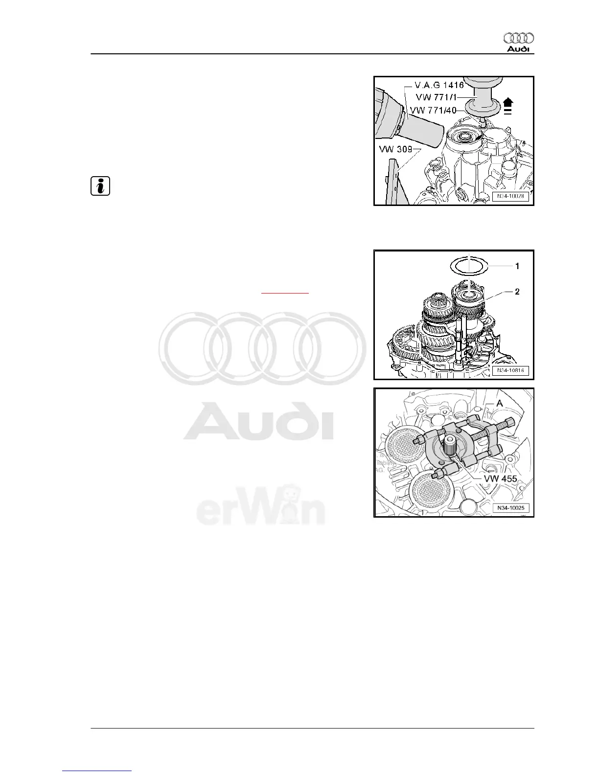 – Remove separating tool -A- and -VW 455- from input shaft.