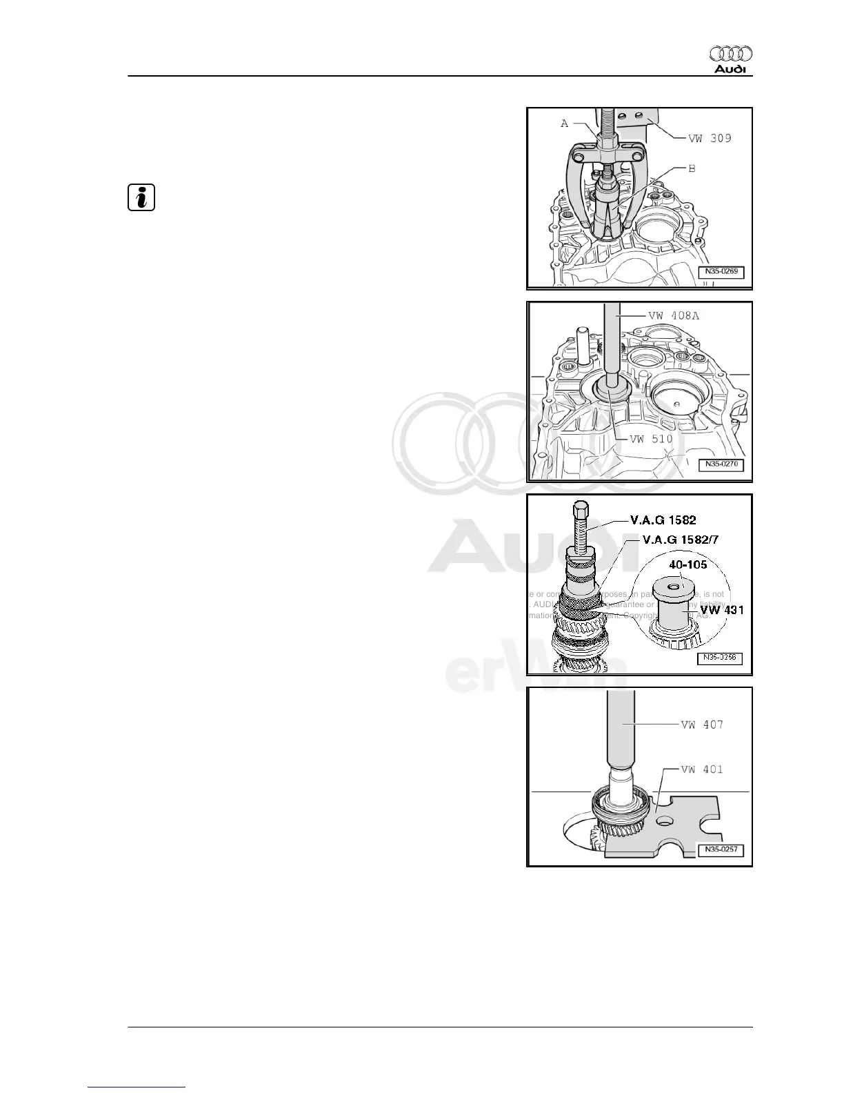 – Before attaching extractor, place -VW 431- and -40 - 105- on