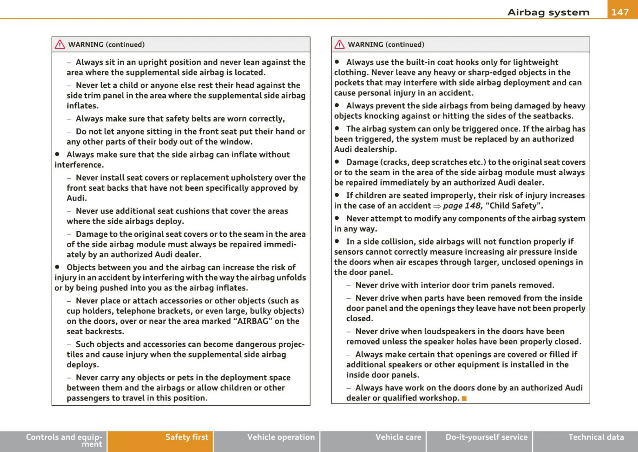 • Damage (cracks, deep scratches etc.) to the original seat covers
