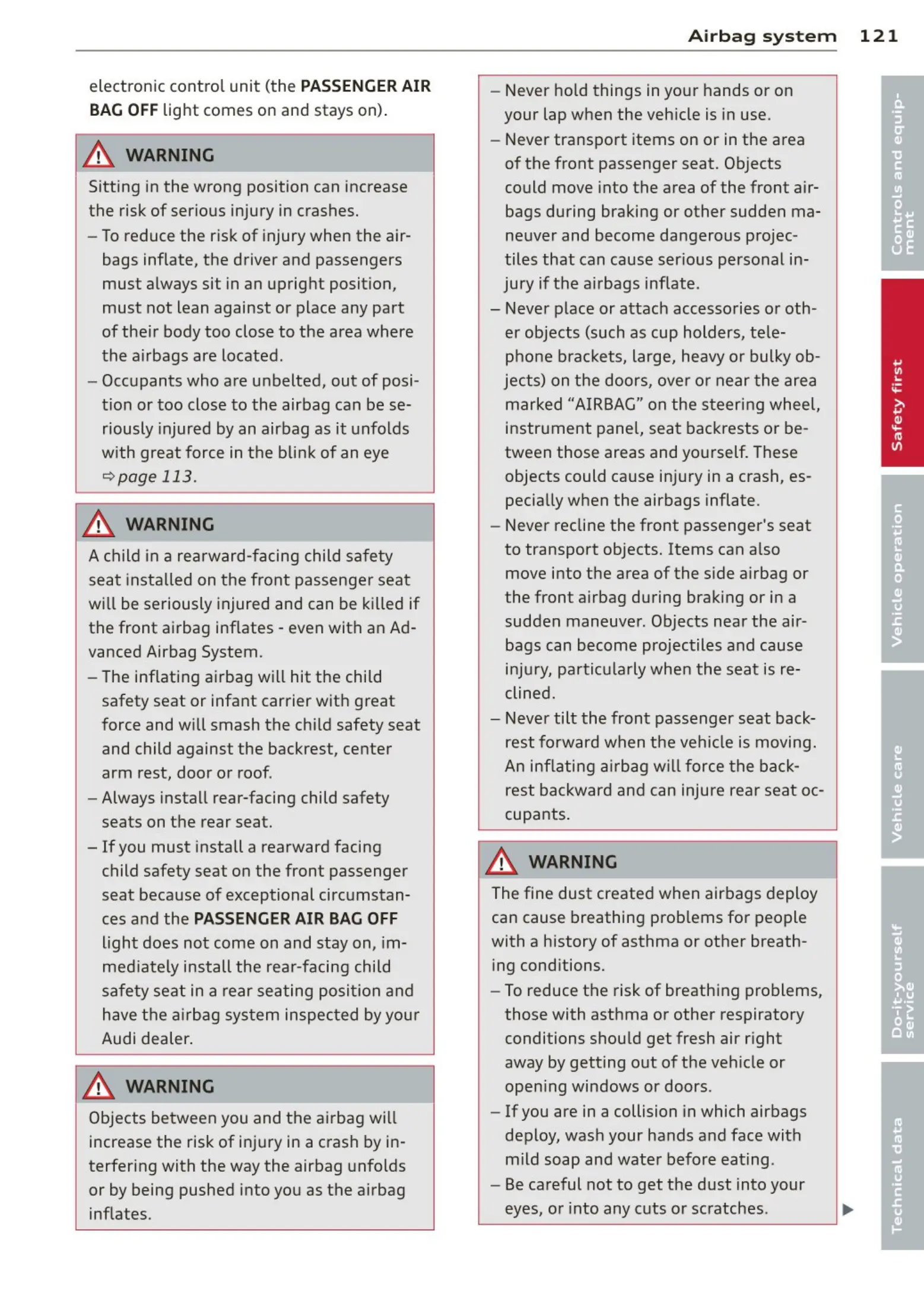 the fron t airbag during braking or in a