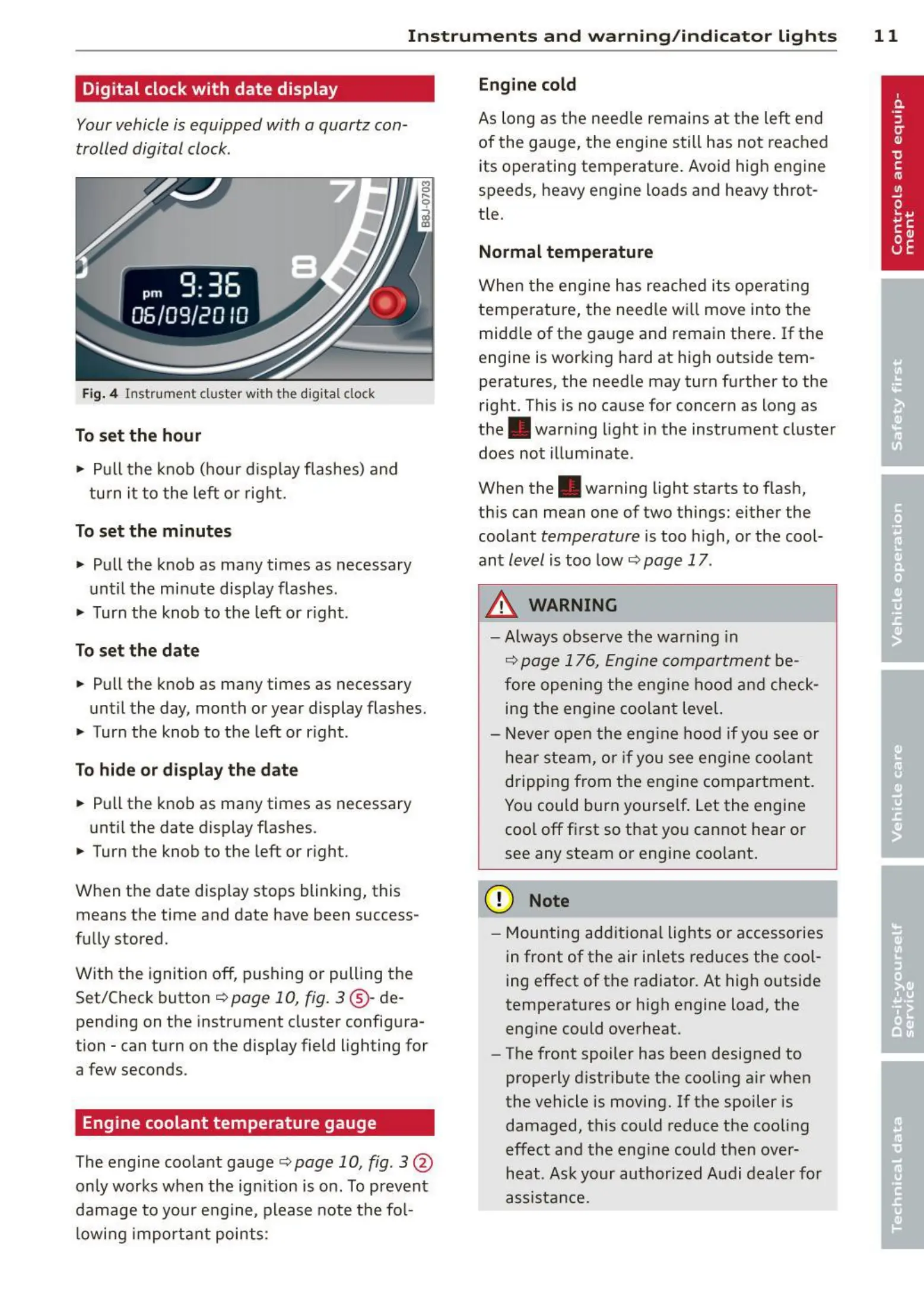 In strument s a nd warning / indicator lights 11